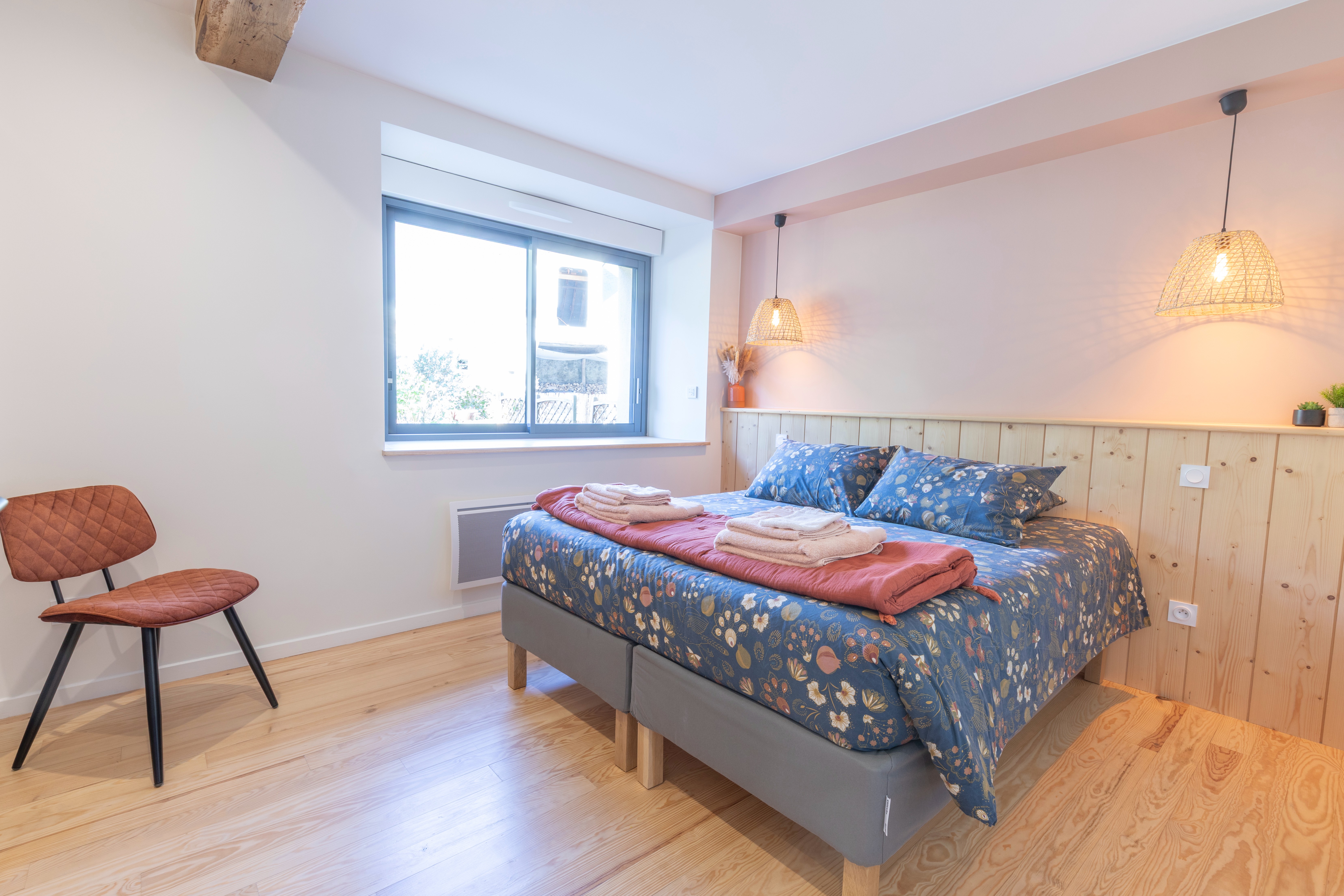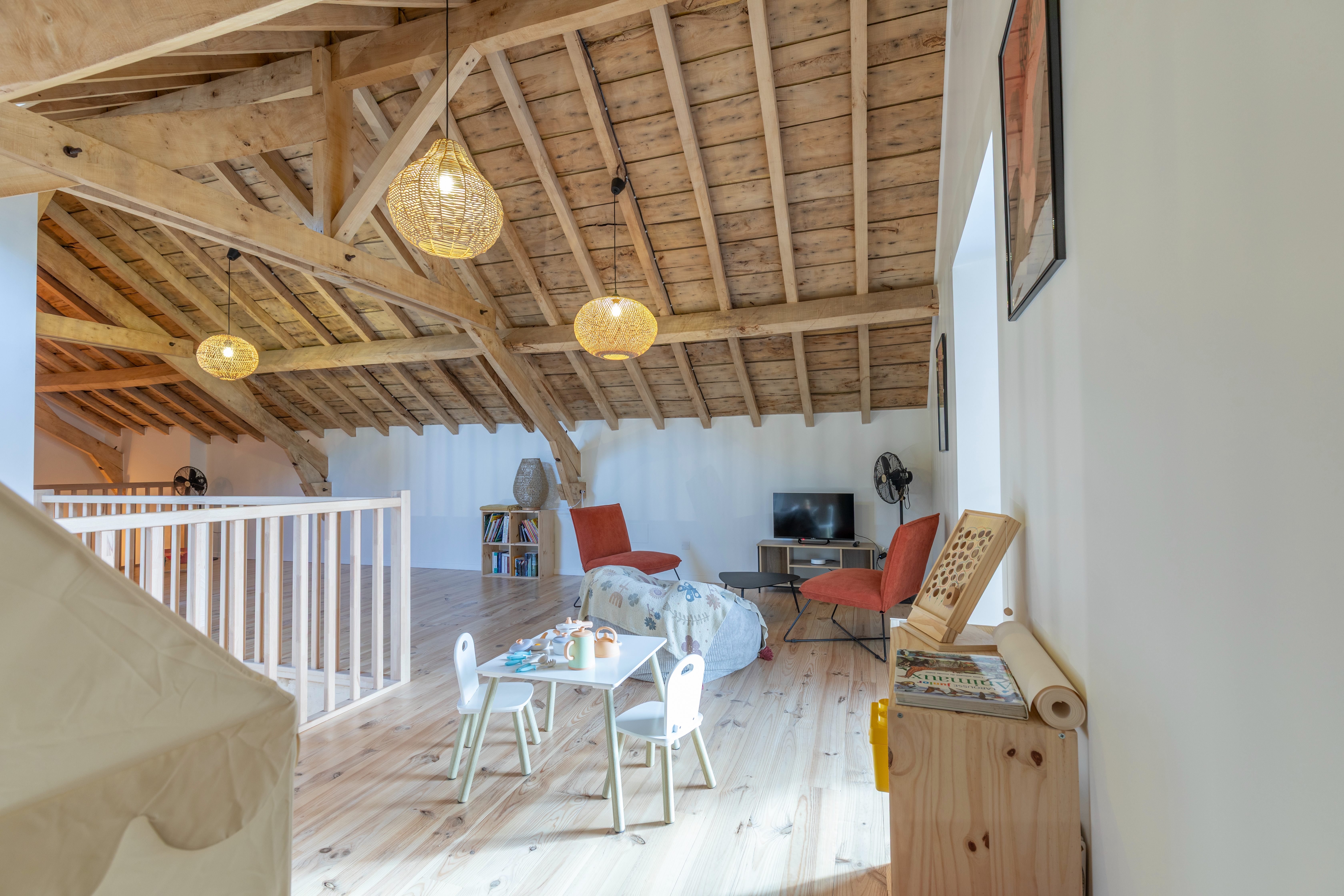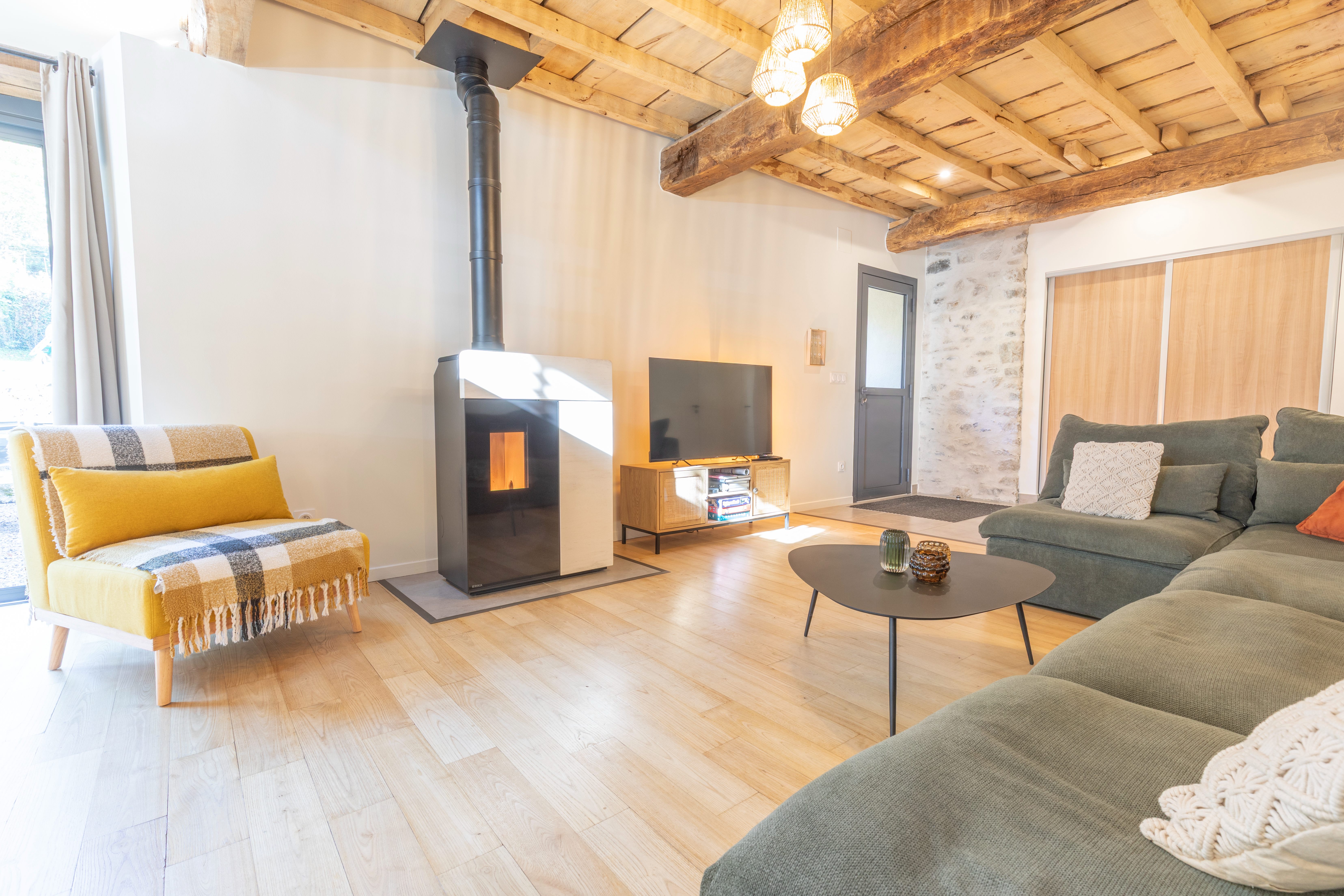 Grange rénovée de 210m² avec goût, comprenant : Au rez-de-chaussée : Cuisine ouverte sur séjour et salle à manger avec buanderie, un spacieux salon avec un poêle à granulés , une chambre avec un lit en 160 (lit séparable en deux lits simples sur demande), un local à skis/vélos, une salle d’eau (douche) et un WC séparé. À l’étage : deux chambres avec un lit en 160 (lit séparable en deux lits simples sur demande) dans chacune, un dortoir avec 4 lits simples, une salle d’eau (douche), un WC séparé et un grand espace jeux avec une TV (sans chaînes) pour y connecter consoles ou applications. Linge de lit et de toilette fourni, lits faits à l’arrivée. Un espace extérieur avec salon de jardin et barbecue un parking privé. Ancienne dépendance de la maison principale des propriétaires également éleveurs sont juste à côté. N’hésitez pas à demander conseil