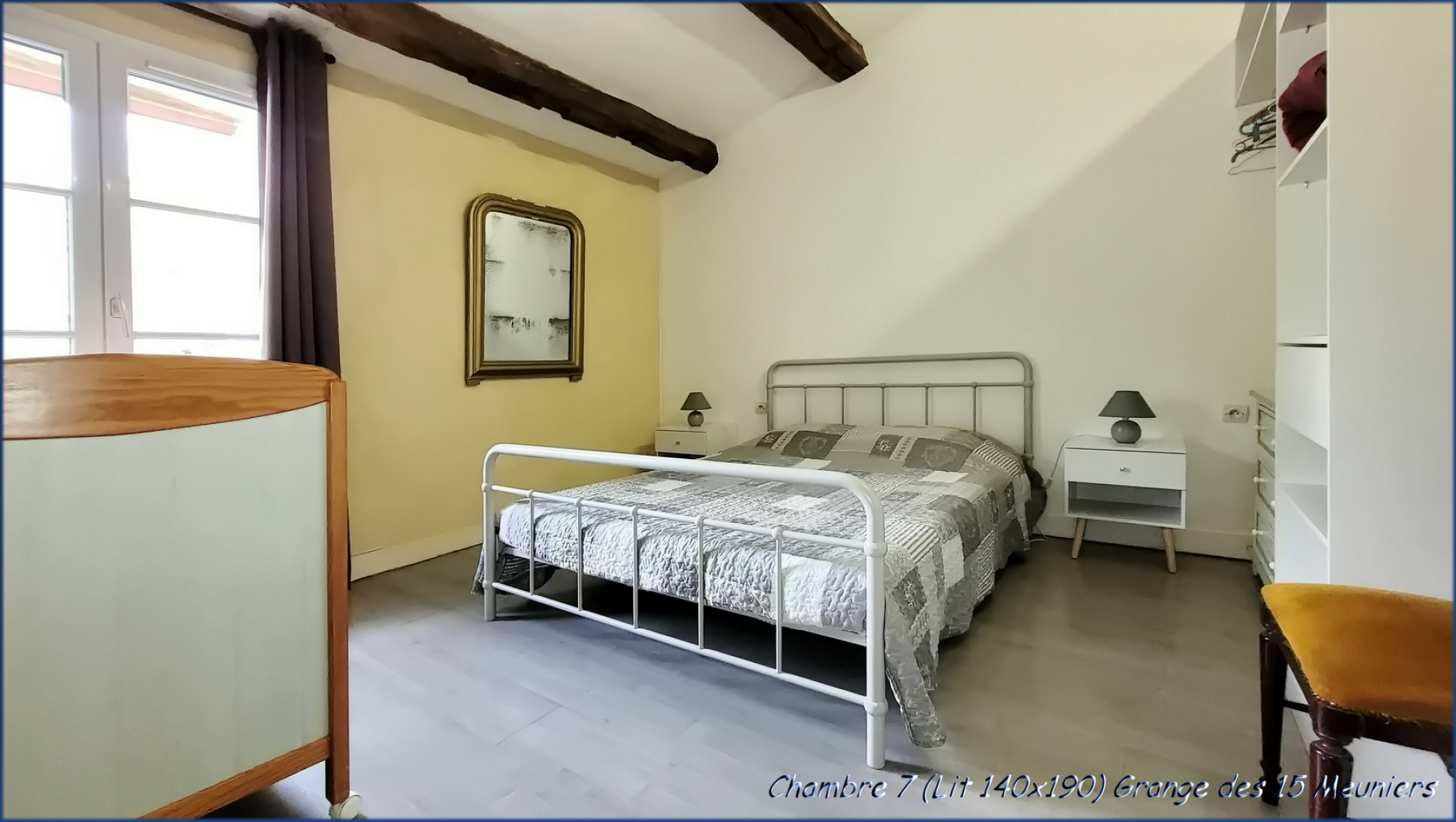 • Under the eaves, two additional beds: one bedroom with 1 single bed (90×190) and another (without window) with 1 single bed (90×190)