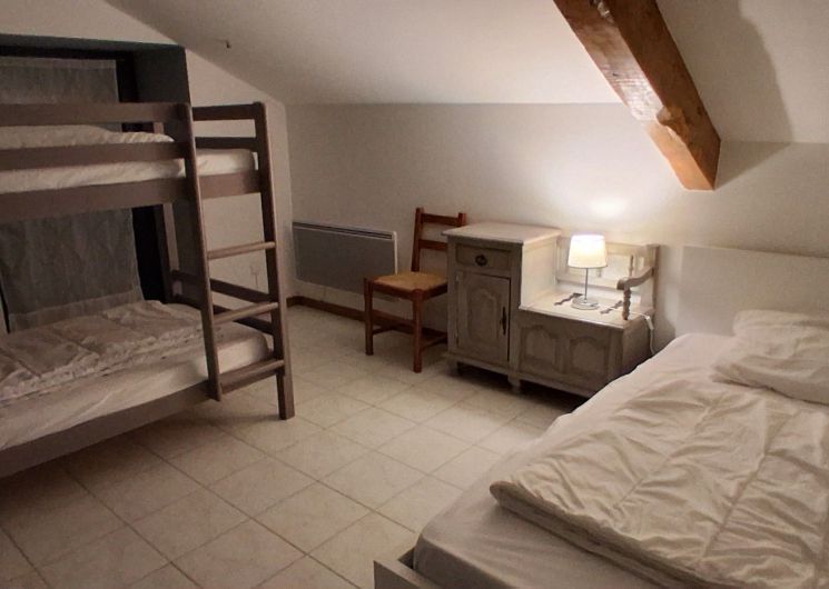 A corridor leads to 1 bedroom (1 x 160cm bed), 1 bedroom (1 x 160cm bed and 1 x 0.90cm bed), 1 bedroom (1 x 160cm bed), a shower room (washbasin and shower) in each ground floor bedroom. One bedroom with its own shower room is accessible to people with reduced mobility.