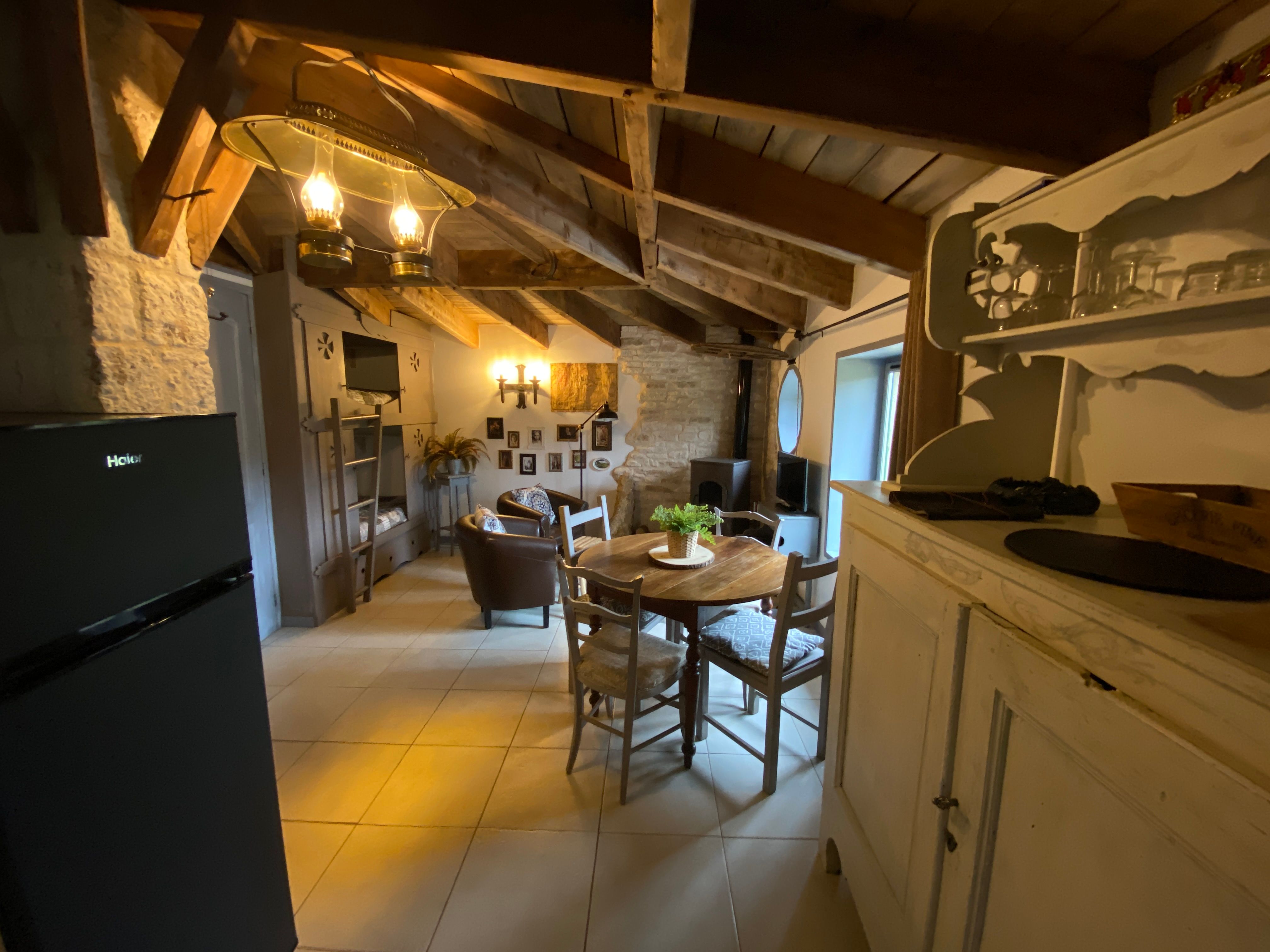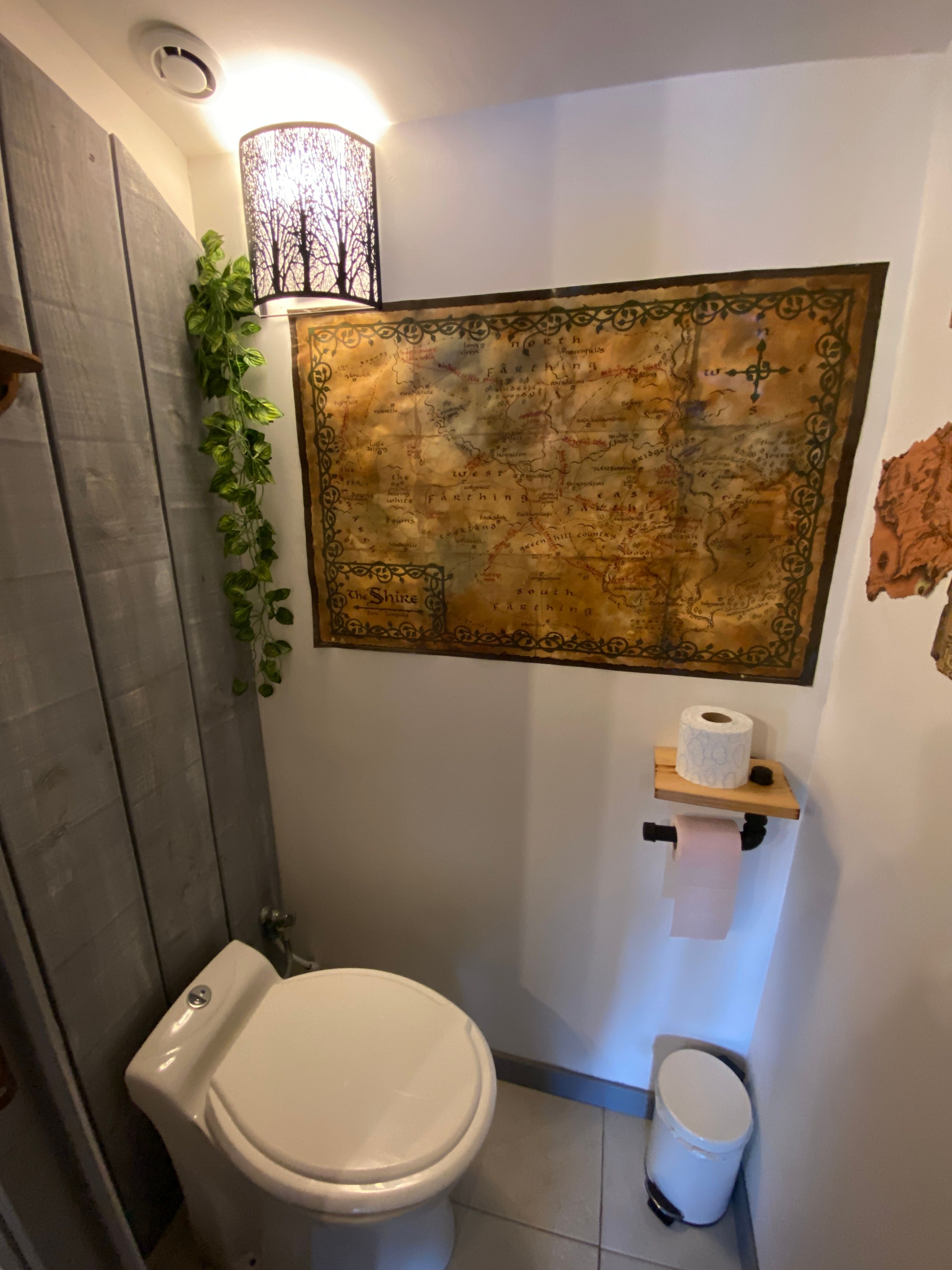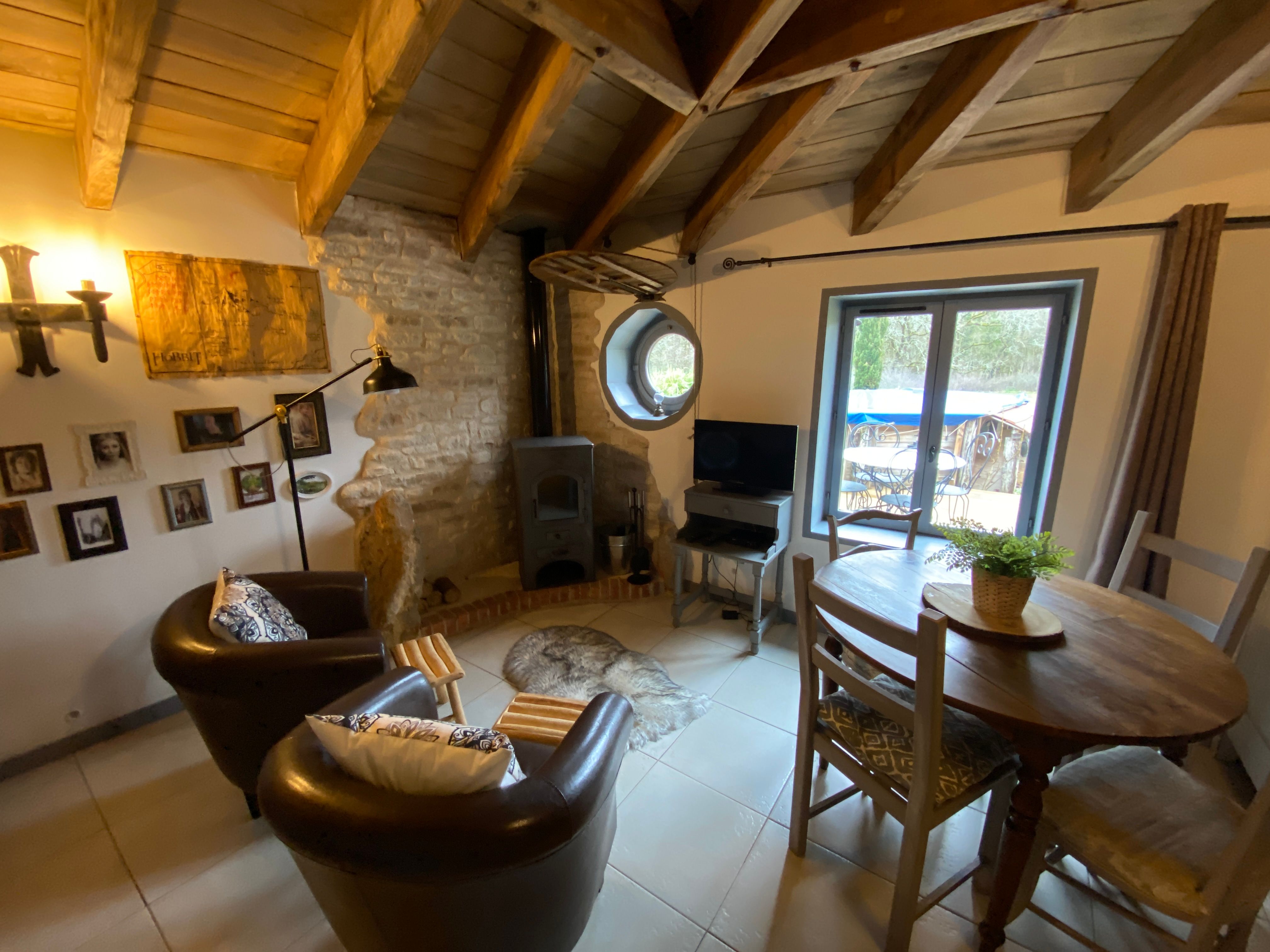 Here everything indicates a most original atmosphere: Outside, green roof, house leaning against an earthen embankment and inside, the spirit of “the Lord of the Rings totally reinvented!