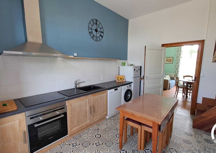 – cuisine équipée : four, lave-vaisselle, lave-linge, réfrigérateur-congélateur, cafetière à filtre, micro-ondes…