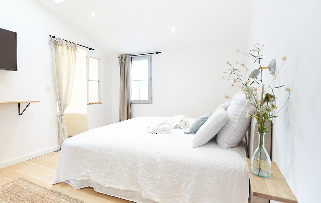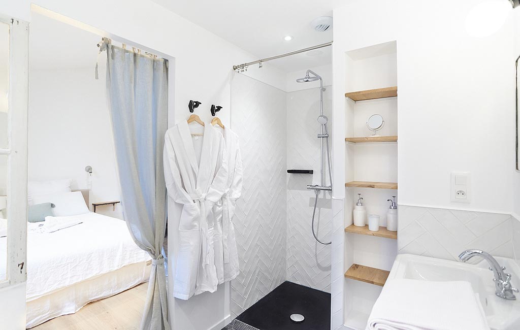 Située au cœur de Pézenas cette maison de village de 130 m² dispose d’un espace de stationnement privatif. Au rez-de-chaussée se trouve la salle de petit-déjeuner et la cuisine dédiée aux hôtes. Il ouvre sur l’espace extérieur clos, comprenant une terrasse, un jardin et une piscine. La Suite 1634 propose un lit 180X200 ou 2x90x200cm, une douche, des wc indépendants et baignoire-balnéo deux places privative. La Chambre 34 est accessible aux PMR, avec un lit 180×200 modulable en 2x90x200cm, un wc indépendant et salle de douche privative. Enfin, au 2nd étage se trouve la Chambre 16, familiale pour deux adultes et un enfant, avec 1 lit 180x200cm ou 2x90x200, ainsi qu’un lit gigogne pour enfant (160x200cm). La salle de bain attenante dispose d’une douche et d’une baignoire. Privatisation possible. Attraits touristiques: Pézenas, ville d’art et d’histoire, plages (Cap d’Agde, Marseillan Plage,…), Béziers, Canal du Midi, Lac du Salagou, Saint-Guilhem-le-Désert. – Baignée de lumière grâce à ces deux fenêtres et son velux, cette suite de 25 m2 au 2nd étage est la plus spacieuse de la maison avec 1 lit 180x200cm ou 2x90x200, ainsi qu’un lit gigogne de 160x200cm ou 2x80x200cm. Salle de bain avec double vasque, douche, baignoire, et WC privatifs.
