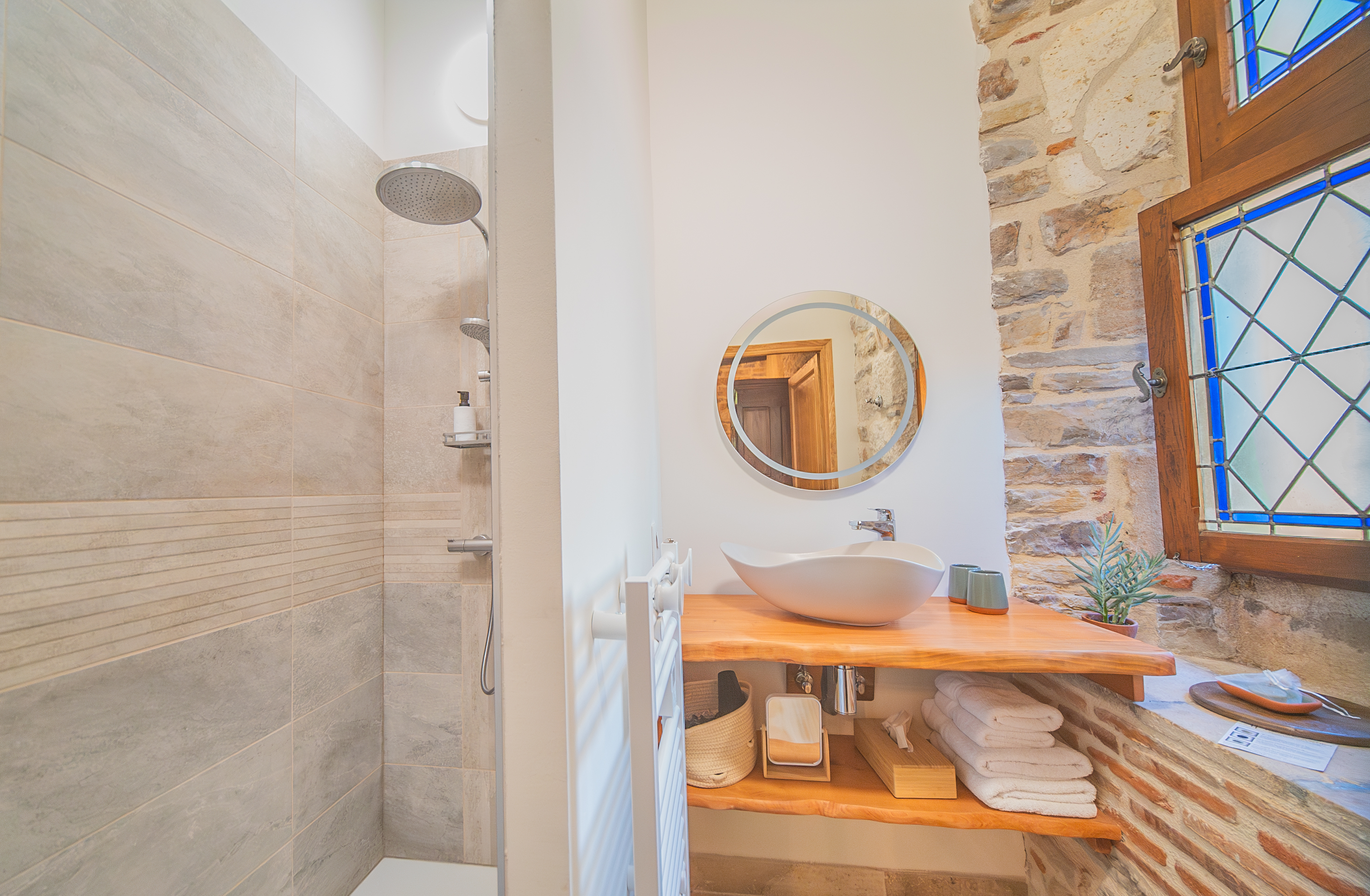 Two bedrooms benefit from natural cooling due to the thickness of the walls, and two are equipped with air conditioning.
