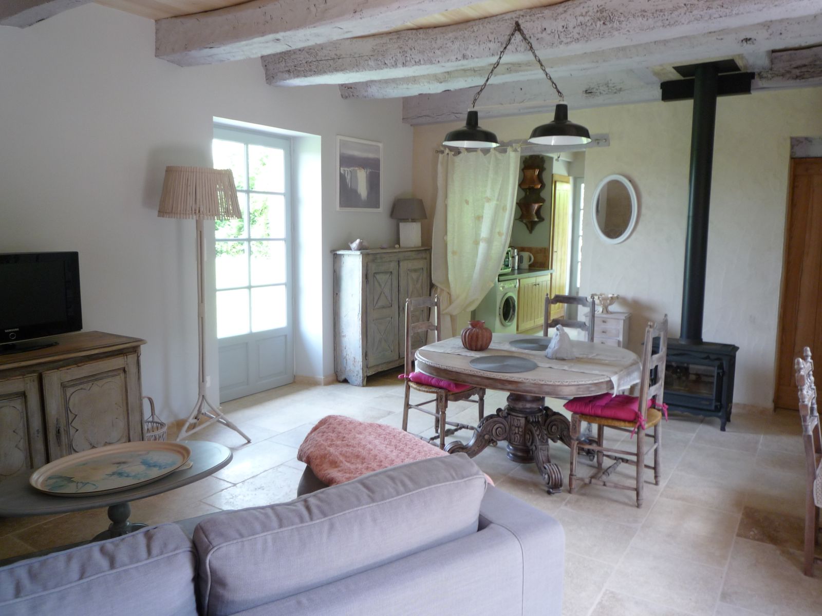 Op het platteland omvat onafhankelijke Gîte, op één niveau (1 stap bij de ingang) een dagkamer met woonkamer (bank, tv, houten fornuis) en keuken (geïntegreerde elementen (wasmachine, magnetron), doucheruimte/wc, 1 Slaapkamer (1 bed 160). Terras en ontspanningslounge + Land (1000 m²) Niet privé, tuingafel en barbecue. Bike Garage (2 mountainbikes en 2 roadfietsen). Een hek en een pad scheiden het huisje van de rivier. Boot beschikbaar aan klanten. Visstangen geleverd. Belasting van verblijf. De prijs is inclusief: vellen, badkamer en huislinnen, hout, wifi internettoegang.
