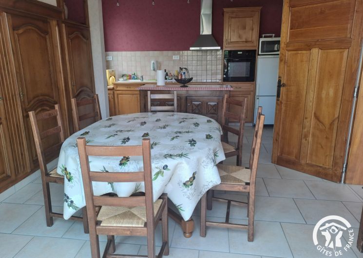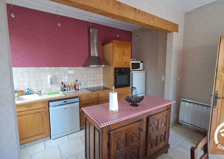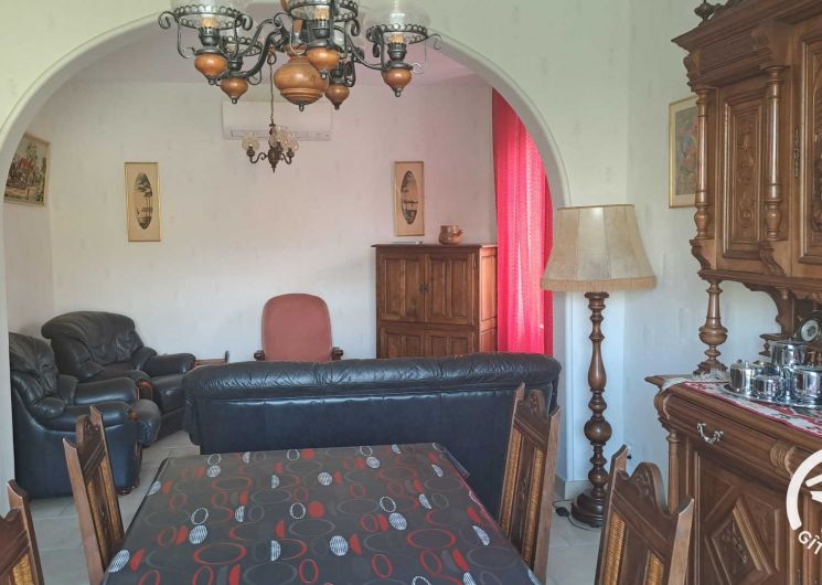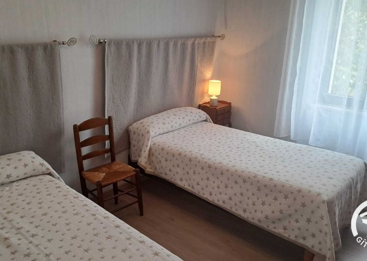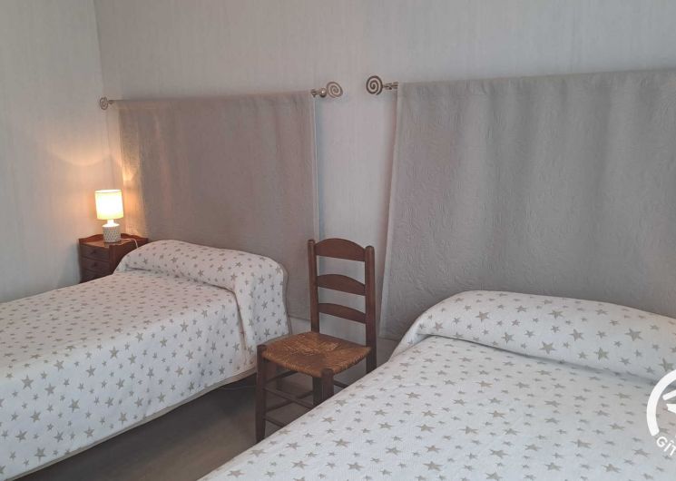 Apartment on the floor of a large house, totally renovated. The ground floor is occupied but gives on the other side, no vis-à-vis. The gîte is accessed from the courtyard by a staircase and a large terrace with garden furniture, barbecue, a pleasant terrace where you can eat in the shade (morning sun). Living room, kitchen, three bedrooms, one with private bathroom, bathroom, wc. Extra charge for bed linen, towels and cleaning service at the end of the stay.
