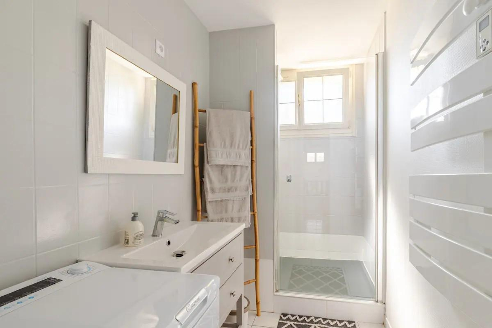 – Une salle d’eau avec douche, vasque et lave-linge,