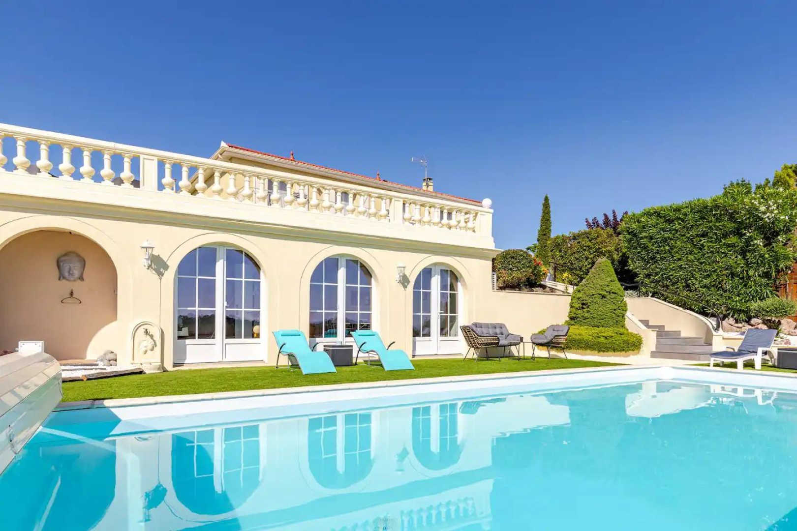 Piscine partagée avec les propriétaires. Ouverte de mi-avril à mi-octobre selon météo, dimension 10x5m, profondeur 1,50m avec une marche plage. Devant la piscine, accès au pool house équipé (bar, réfrigérateur, cafetière, table et assises). Une douche d’extérieur complète la zone de détente autour de la piscine et ses transats.