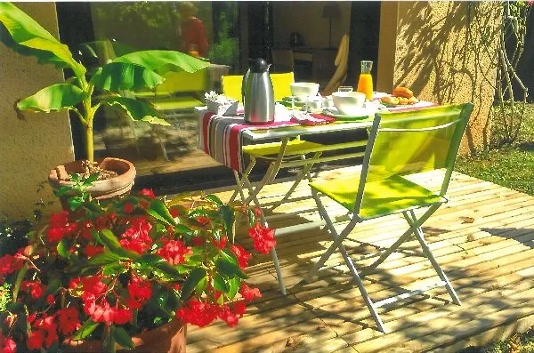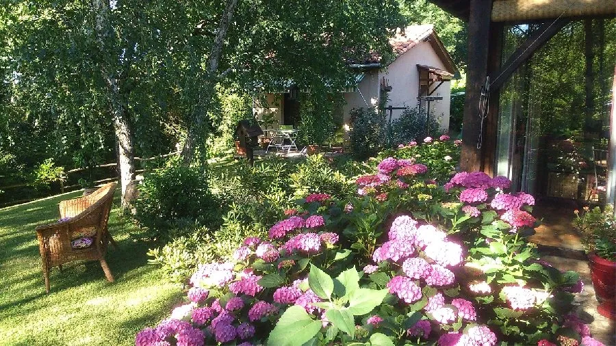 Dans un cadre verdoyant, loin du bruit, à 3 km du centre-ville, un jardin fleuri, indépendant, sera un havre de paix pour votre séjour. En plus d’une grande chambre, un salon attenant, tout aussi vaste (15 m²) équipé, avec télé, wifi, bibliothèque, le tout donnant sur une terrasse avec salon de jardin. Un jardin ainsi qu’un micro-ondes sont à votre disposition. Les petits déjeuners sont servis, soit sur la terrasse, soit chez votre hôte. Ils sont copieux, variées avec des produits maisons. 2 vélos vous attendent, si vous le souhaitez.