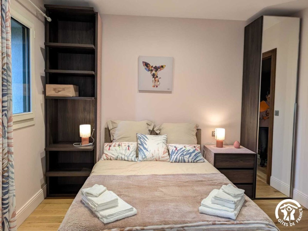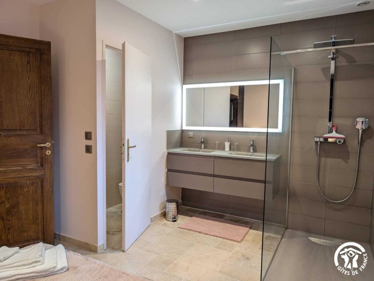 Au cœur d’un ancien domaine viticole, dans une maison type Château Pinardier, située aux abords du château de Pierre de Ribes construit en 1614 pour son épouse. Cette ancienne demeure cernée par les vignes et les plantations de la fameuse Cèbe, saura vous apporter calme et repos au cours de votre séjour Lézignanais. Soyez reçu dans l’une des 4 suites de la maison. Chaque chambre porte un prénom des 4 garçons de vos hôtes, Antoine, Arthur, Paul et Thomas. Vous disposerez d’une salle de bain et de toilettes privées dans chacune des chambres. Vous prendrez vos petits déjeuners dans la salle à manger de vos hôtes, et si le temps le permet, le soleil vous accompagnera au sein d’un petit jardin aménagé. Les produits locaux sont au rendez-vous, confitures, miel, pains, etc…le café est même torréfié à Vic la Gardiole. Pour les plus sportifs, une petite salle de sport est à votre disposition avec banc de musculation, haltères, et petits accessoires de sport. Des sentiers dans les vignes jusqu’à l’Hérault peuvent aussi permettent de belles promenades et quelque footing. Piscine commune avec les locataires du gîte et des autres chambres d’hôte. (dimension 10mx7m / profondeur mini 1,20m maxi 1,70m / plage horaire accès 10h – 18h) Un parking privé et sécurisé est à votre disposition. – Chambre double de 15m2 avec salle d’eau privative et wc séparé