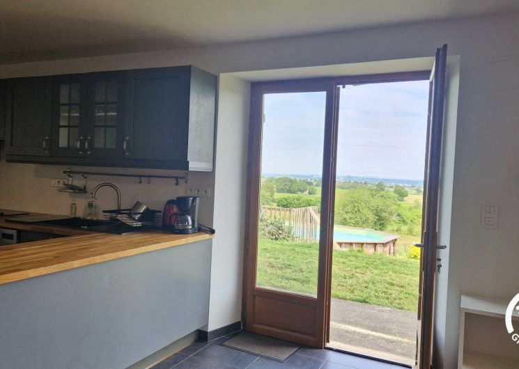 Maison indépendante, aménagée dans une ancienne étable typique du Ségala, à proximité du propriétaire. Gîte entièrement de plain pied, avec vue panoramique depuis la terrasse couverte.