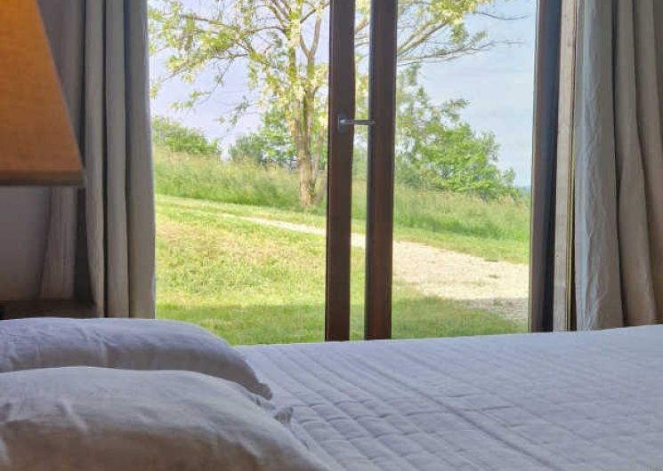 Terrasse couverte, plancha, barbecue rond au charbon Weber®, piscine hors-sol avec terrasse, grand terrain de 3 hectares où vos enfants pourront joyeusement s’ébattre. Il descend en pente douce vers un petit étang alimenté par une source.