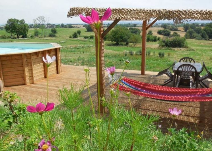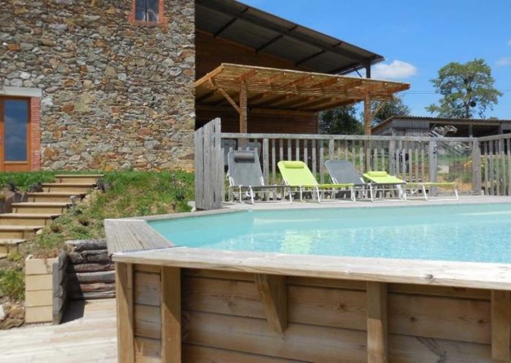 Dimensions de la piscine hors-sol : 8 x 4,50 mètres sur 1,30 mètres de hauteur. Piscine ouverte de juin à septembre.