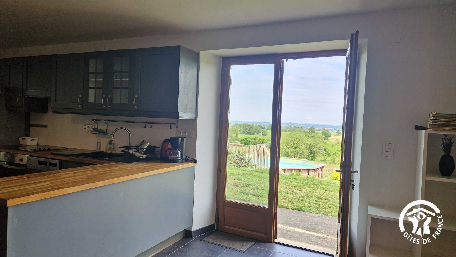 Maison indépendante, aménagée dans une ancienne étable typique du Ségala, à proximité du propriétaire. Gîte entièrement de plain pied, avec vue panoramique depuis la terrasse couverte.