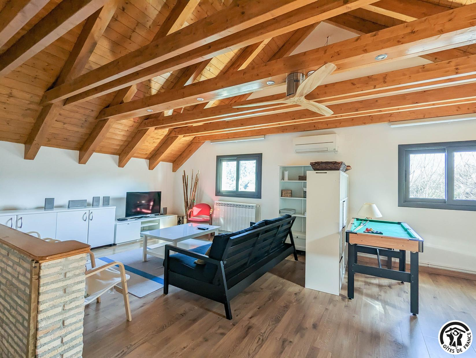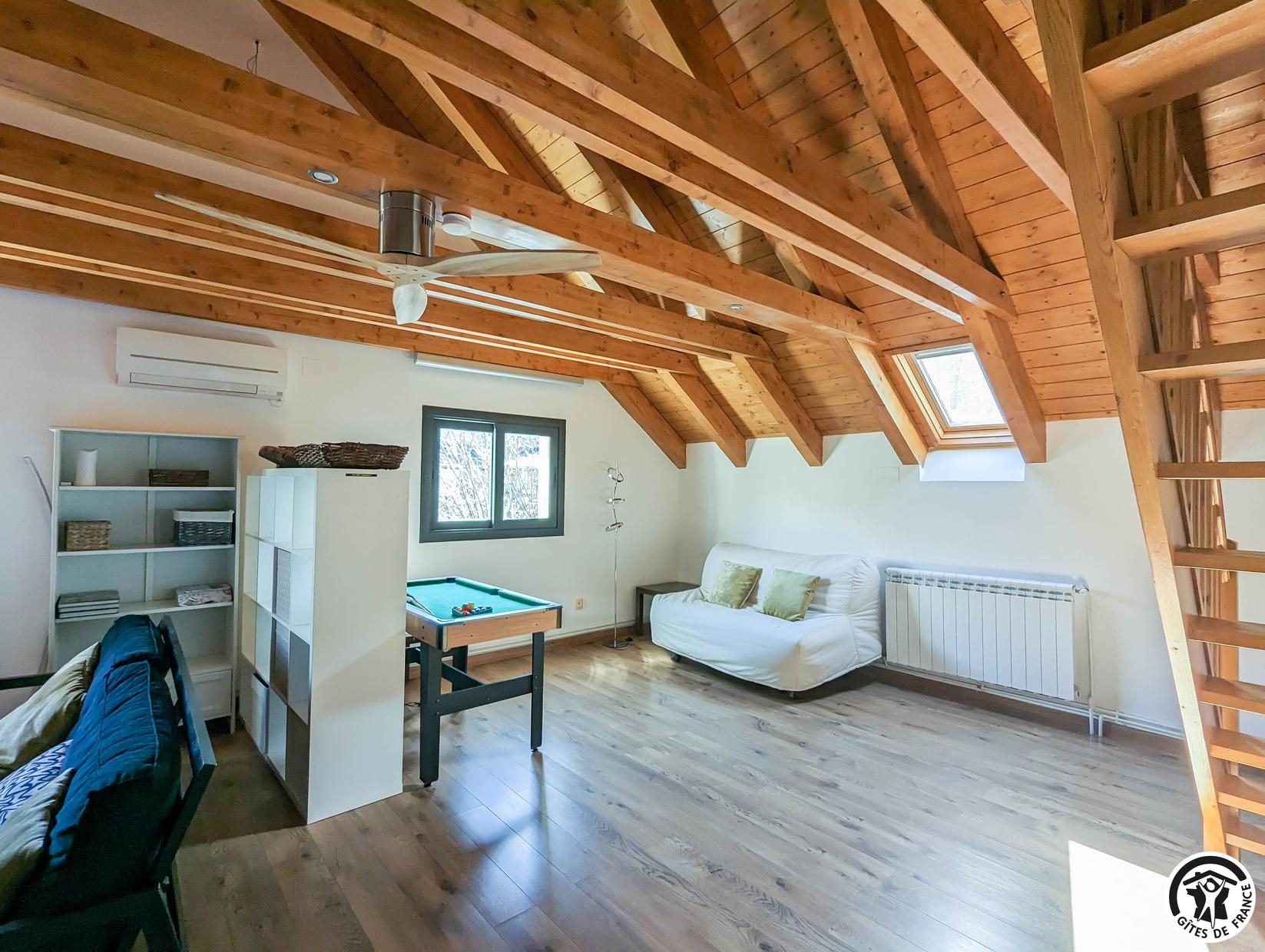 Met overdekt terras aan de voorkant, tuinmeubelen en vaste barbecue om de hele dag van de zon te genieten, zit je heel dicht bij het skigebied van Le Mourtis (12km), de Garonne (2km) en aan de poort naar Spanje (15km). Omheinde tuin. Eigen garage voor één auto en parkeerplaats. Dicht bij alle winkels en voorzieningen. Honden alleen buiten toegestaan met borg. Lakens, handdoeken en huishoudlinnen inbegrepen. Begane grond: woonkamer, keuken, doucheruimte met WC en slaapkamer (1 x 160 eenpersoonsbed), WC. 1e verdieping: mezzanine met slaaphoek en slaapzaal (3 slaapbanken 120cm), 2 slaapkamers met elk 1 tweepersoonsbed (140cm), badkamer met douche en WC. 2e verdieping: kleine zolderkamer (1 tweepersoonsbed 140cm). Kan als extra bed gebruikt worden. Elektrische verwarming in elke slaapkamer. Pelletkachel in de woonkamer. Omkeerbare airconditioning op de begane grond en 1e verdieping. Traduction automatique par DeepL via DATAtourisme