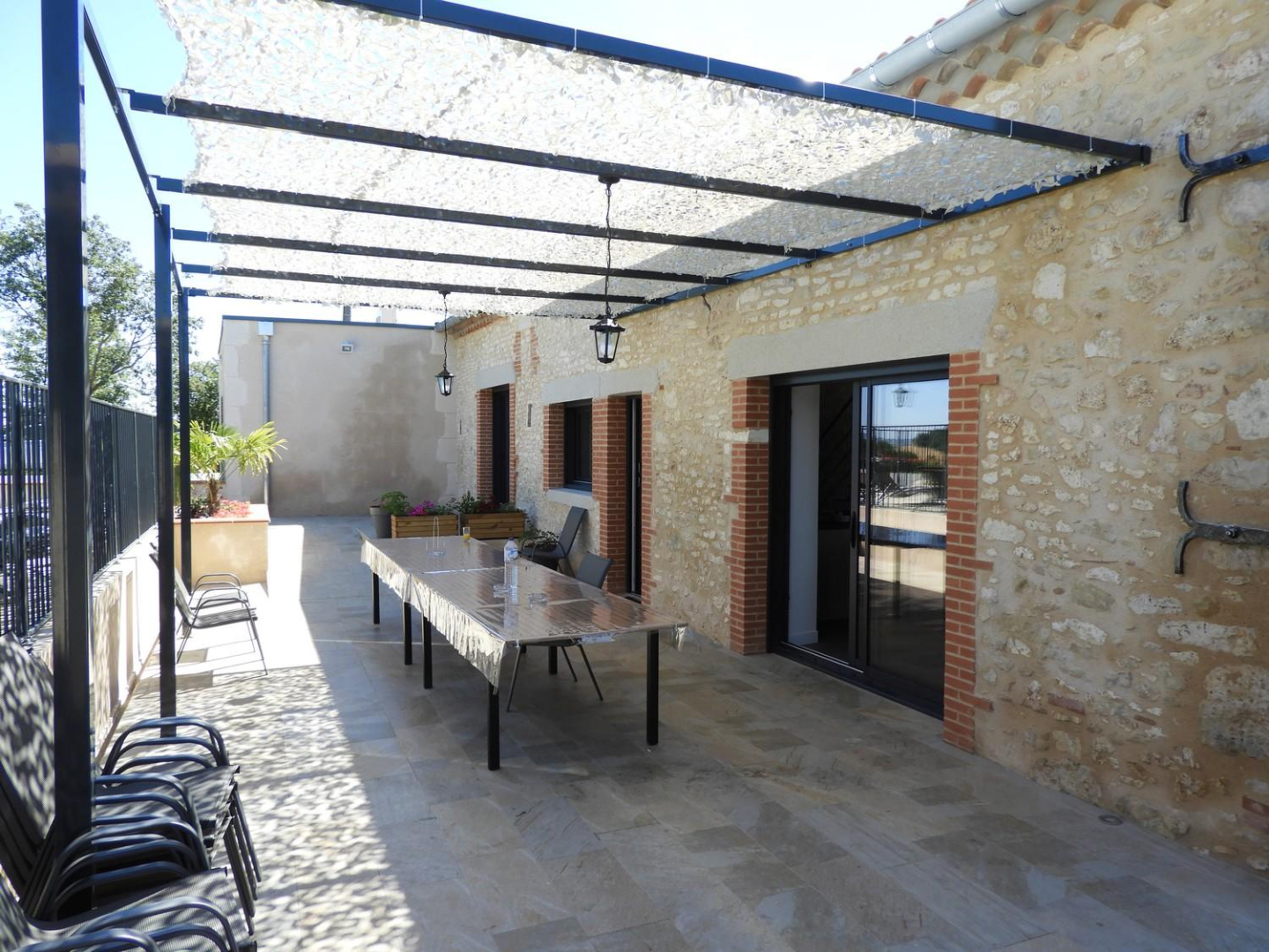 Vous pourrez profiter de la grande piscine CHAUFFÉE privative et de la grande terrasse avec son co…