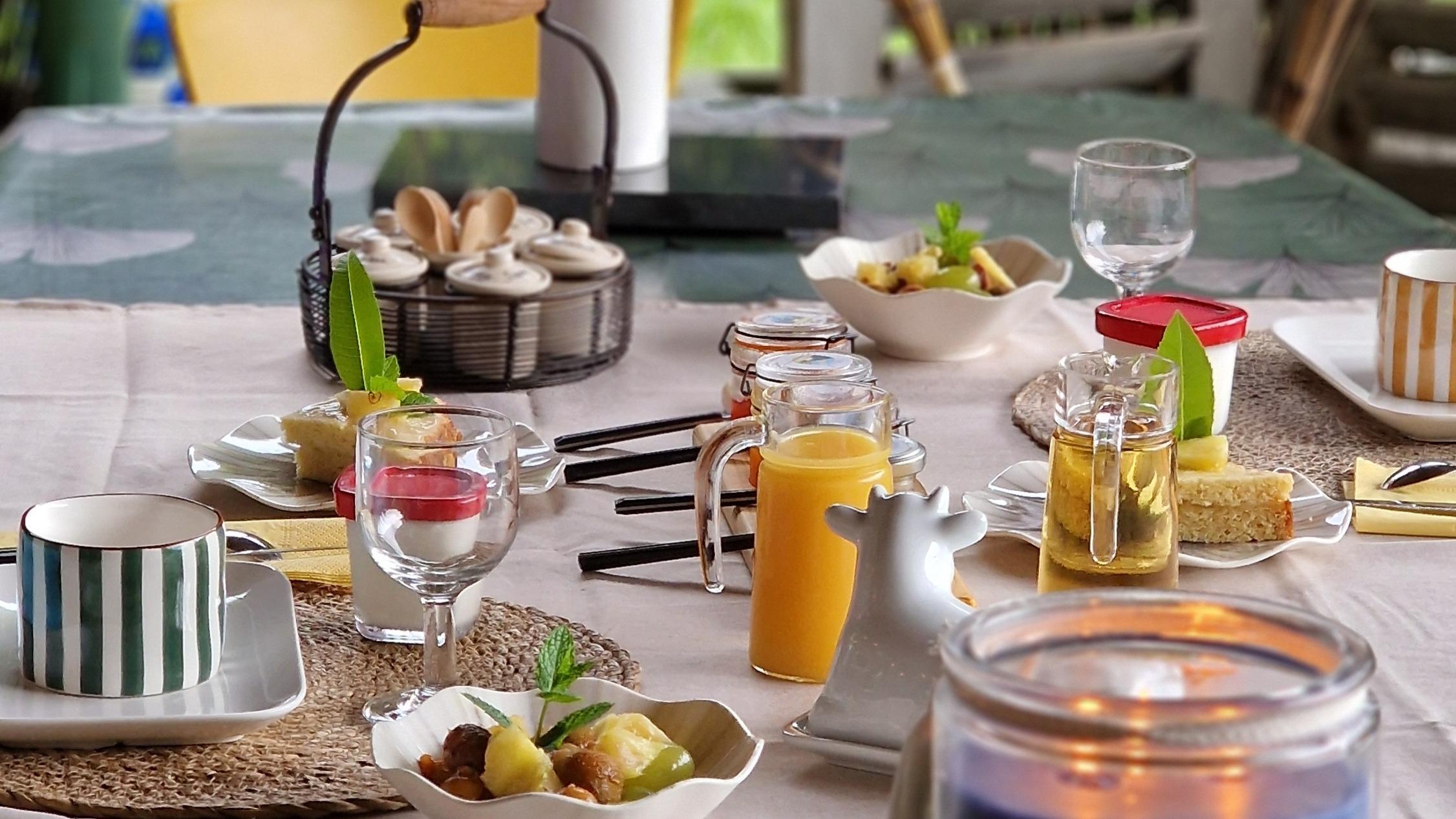 Profitez de la terrasse ensoleillée pour prendre votre petit-déjeuner servi aux pieds de votre porte. Chambre climatisée et de plain pied avec 2 marches à l’extérieur pour y accéder.