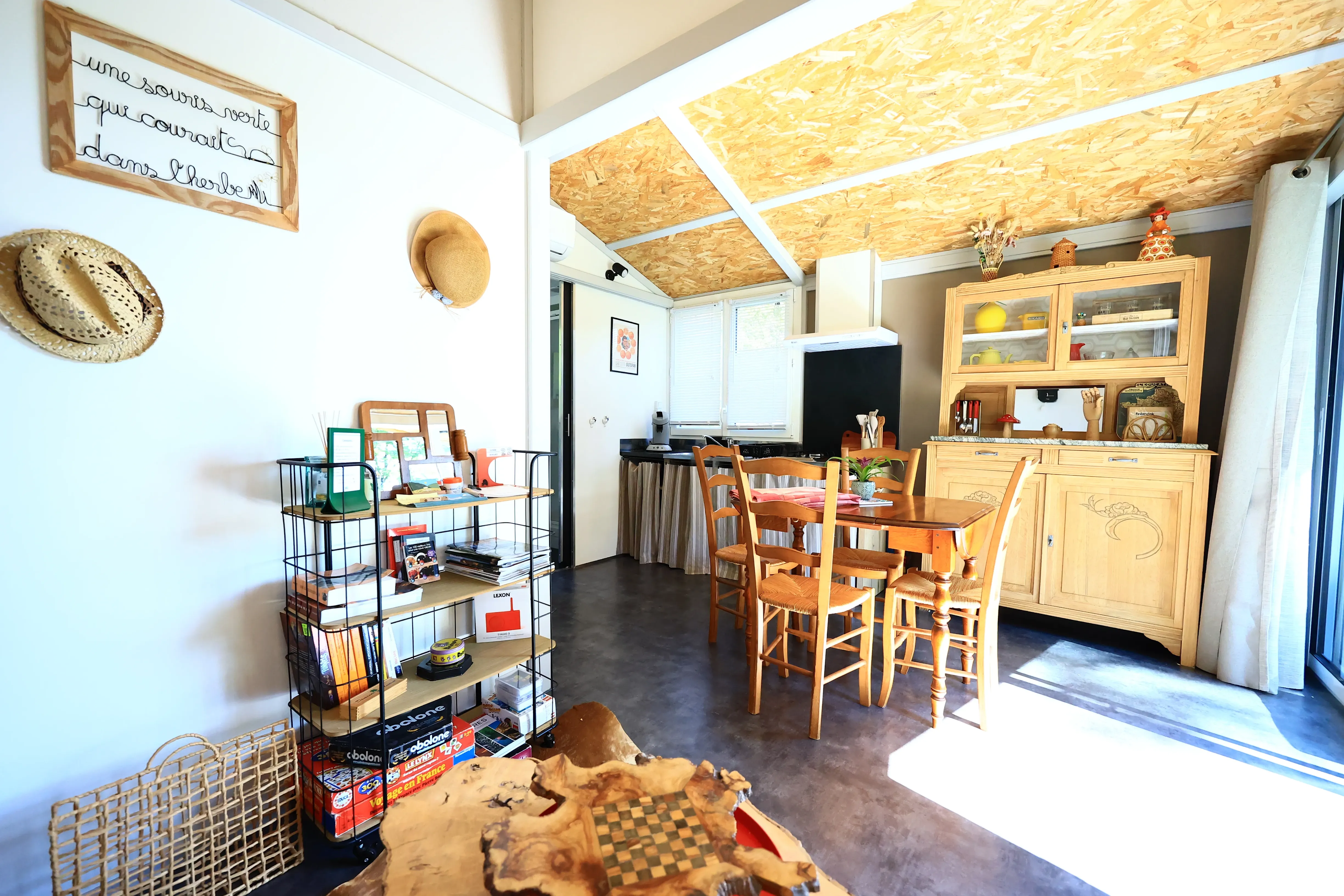 Le jardin est à partager avec les occupants de la chambre d’hôtes, et les propriétaires. Pourquoi pas faire une partie de pétanque ensemble, ou une partie de babyfoot ? Ici on partage des bons moments, on célèbre le slow tourisme, on prend soin de l’environnement (et de nos hôtes !). Cuisine d’été couverte à partager avec four, barbecue, évier et vaisselle.
