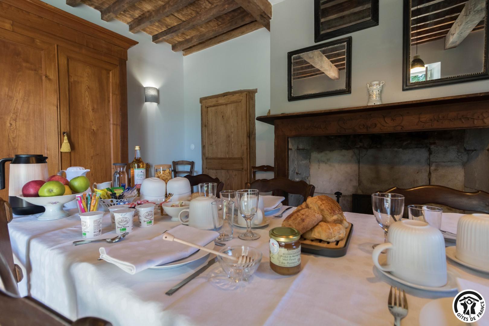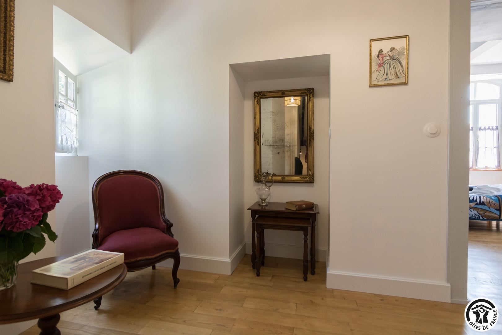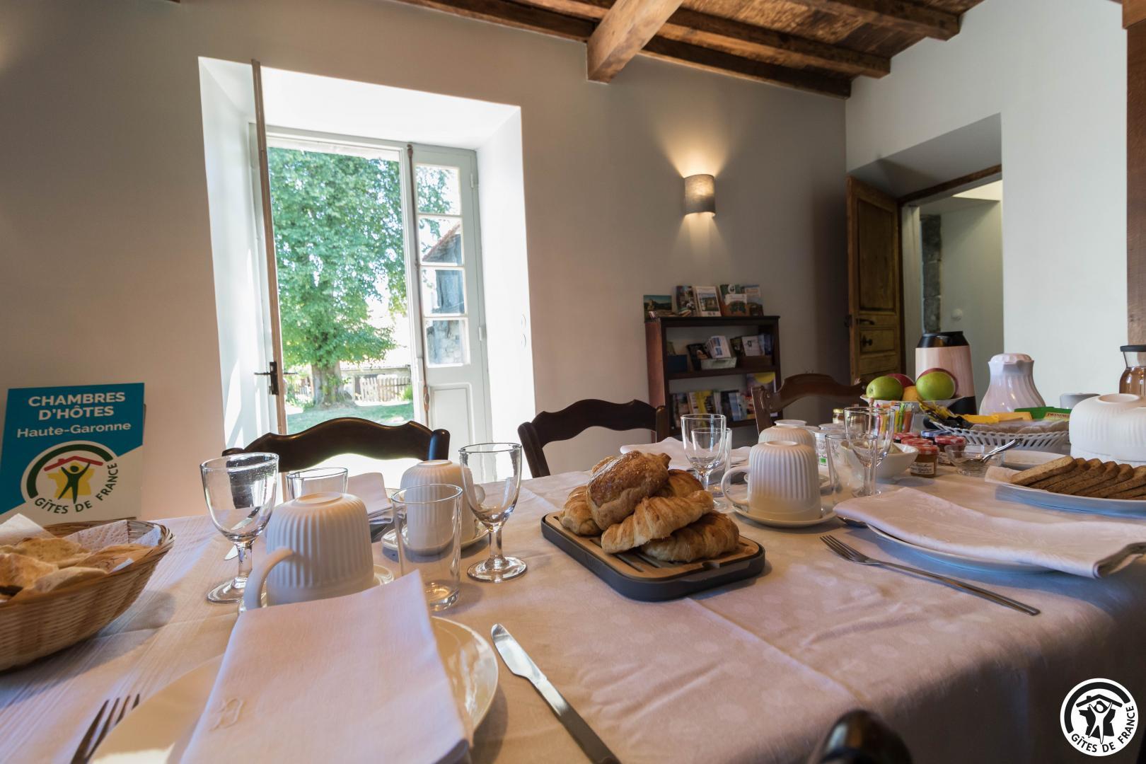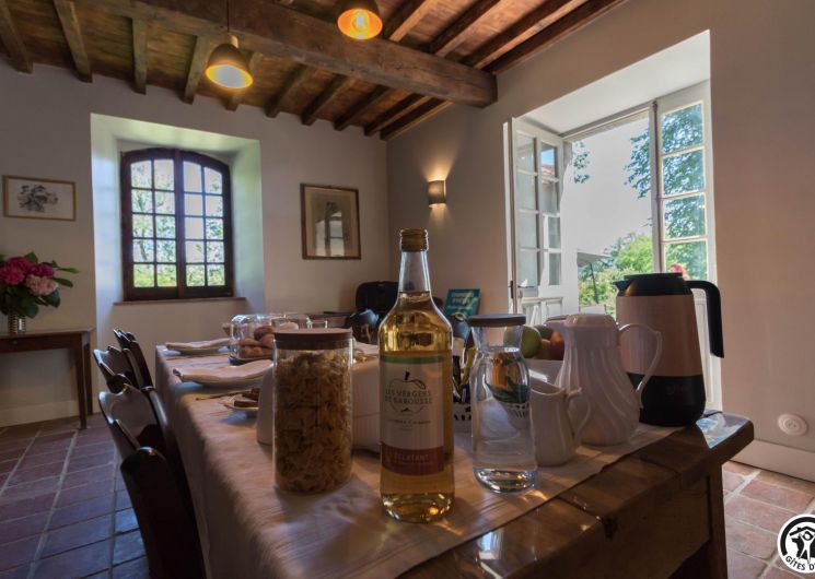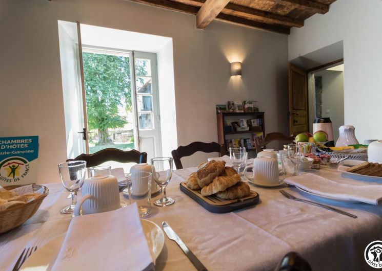 The Chambre Athos, located on the ground floor, has been entirely designed with disabled access in mind. Spacious, bright and decorated with period features, it has a comfortable double bed (140×200), an en suite shower room with walk-in shower and facilities to suit all needs. Upstairs, the Chambre Porthos will win you over with its refined furnishings and carefully chosen drapes. The 2 twin beds (90*200) and private shower room add to the peaceful, elegant atmosphere. Guests have access to a communal lounge for reading or socialising, a fully-equipped kitchen (fridge-freezer, oven, microwave and induction hob), and a cosy dining room where breakfasts are served featuring local, home-made produce. The vast enclosed garden, overlooking the Garonne, is an invitation to rest and contemplate.