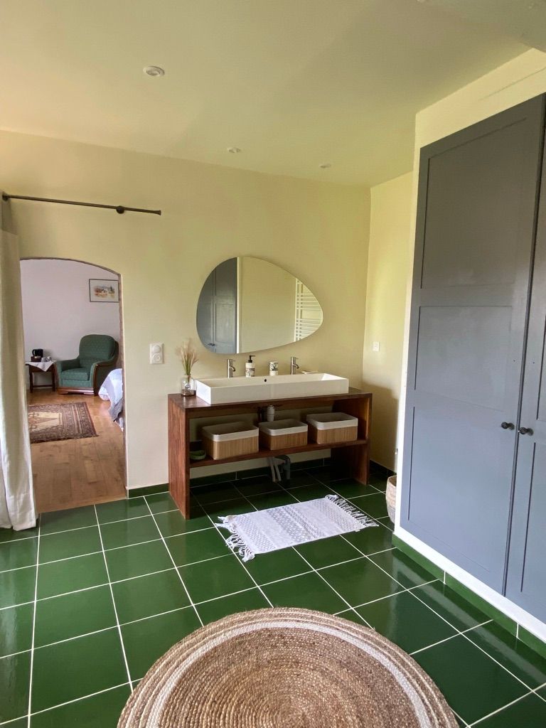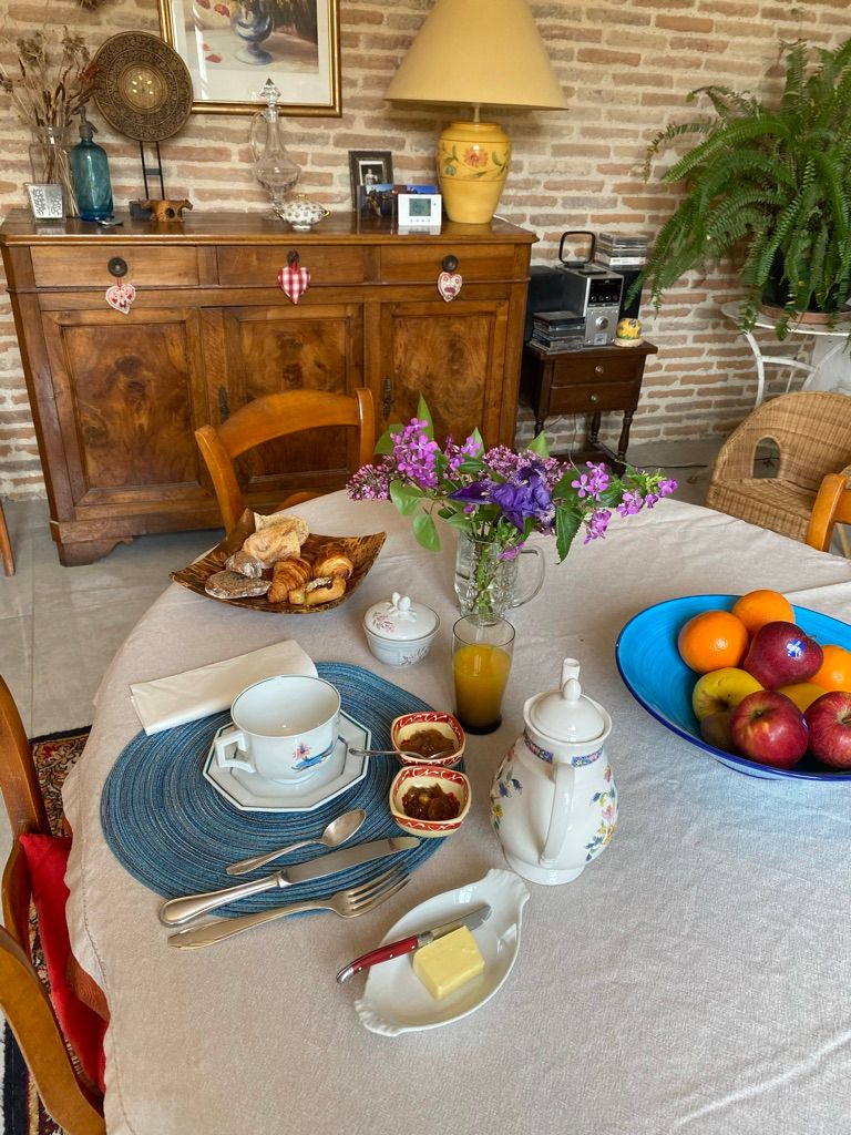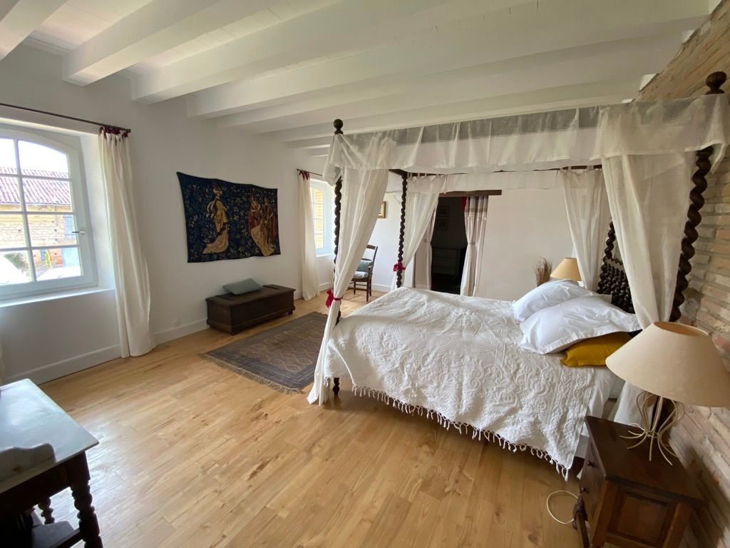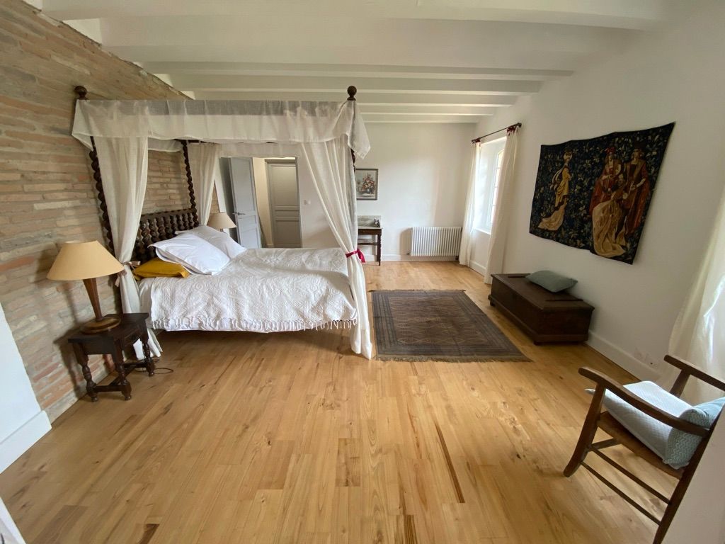 The two bedrooms are on the 1st floor: The baldaquin bedroom with 1 four-poster bed (140cm), a sitting area with courtesy tray, a shower room with walk-in shower and wc. The spring bedroom with 1 double bed (180cm), a desk, a small sitting area with courtesy tray and a large bathroom with bath, walk-in shower and wc. An extra single bed can be added to both bedrooms. Wifi in the house and bedrooms. Gravelled courtyard and park with views of the Pyrenees. In the morning, you can enjoy a hearty breakfast with home-made products. In the evening, by prior arrangement, you can enjoy a convivial table d’hôtes in the large dining room. Louis will regale you with local produce and wines in front of the big fireplace.