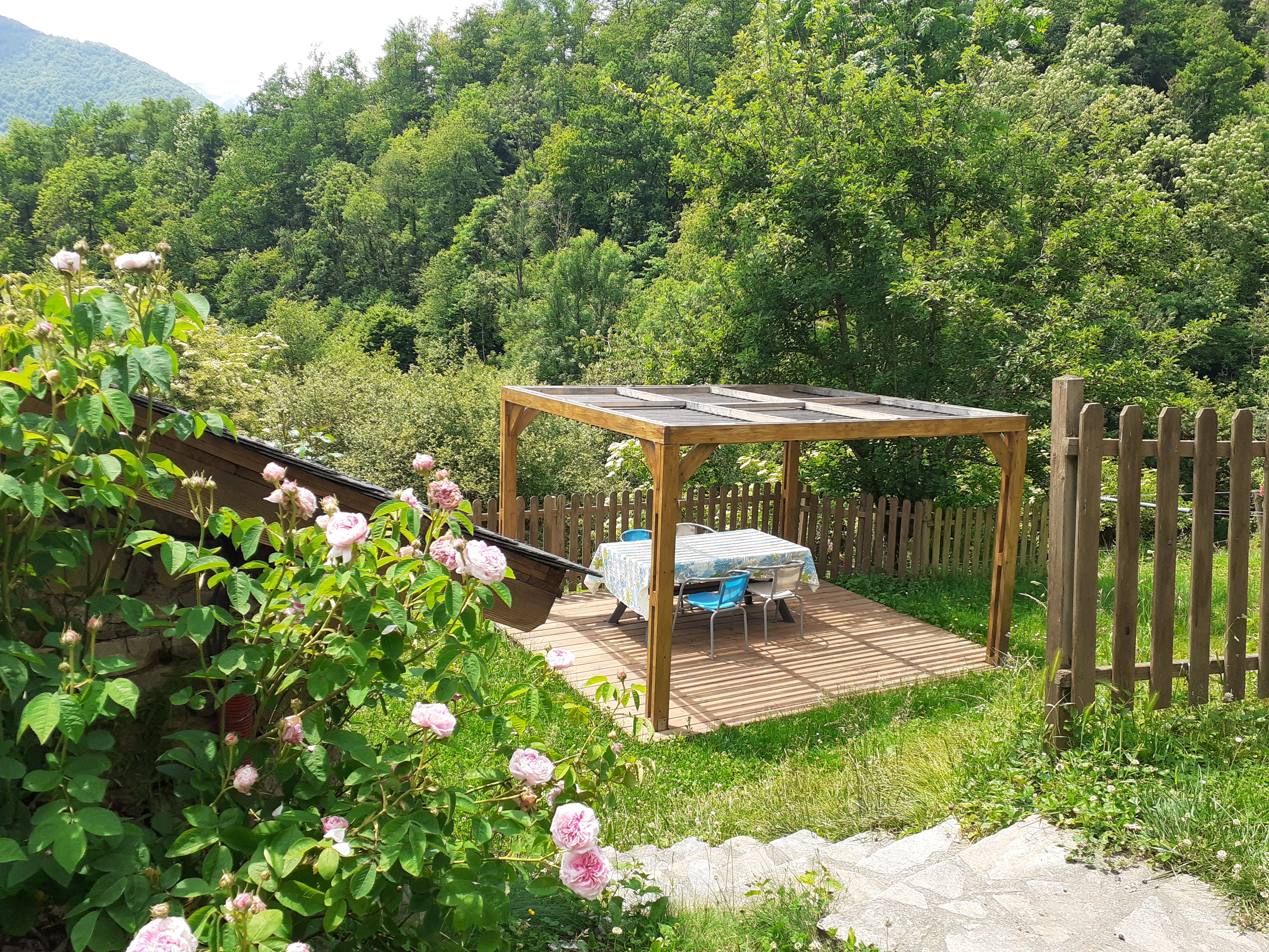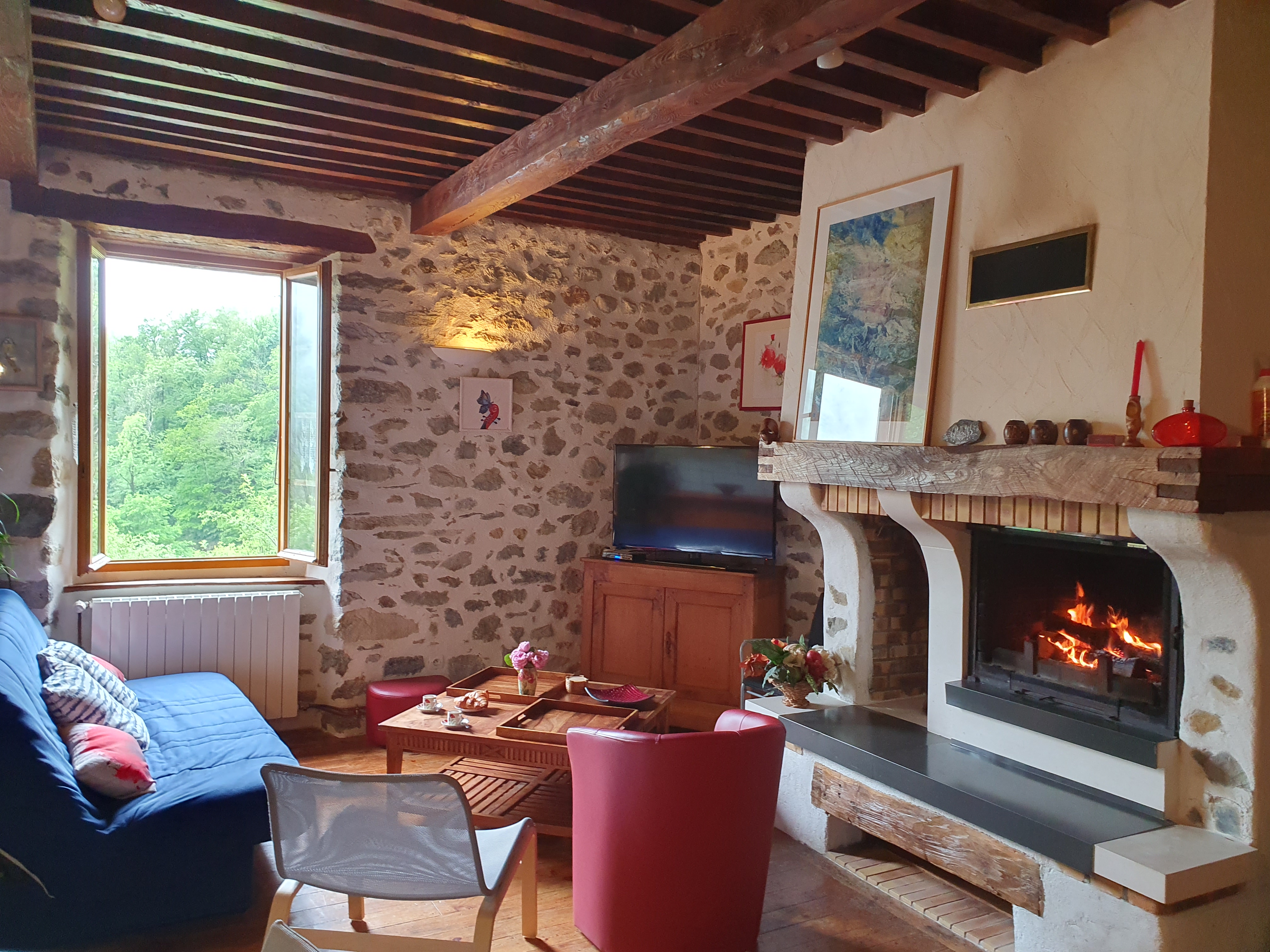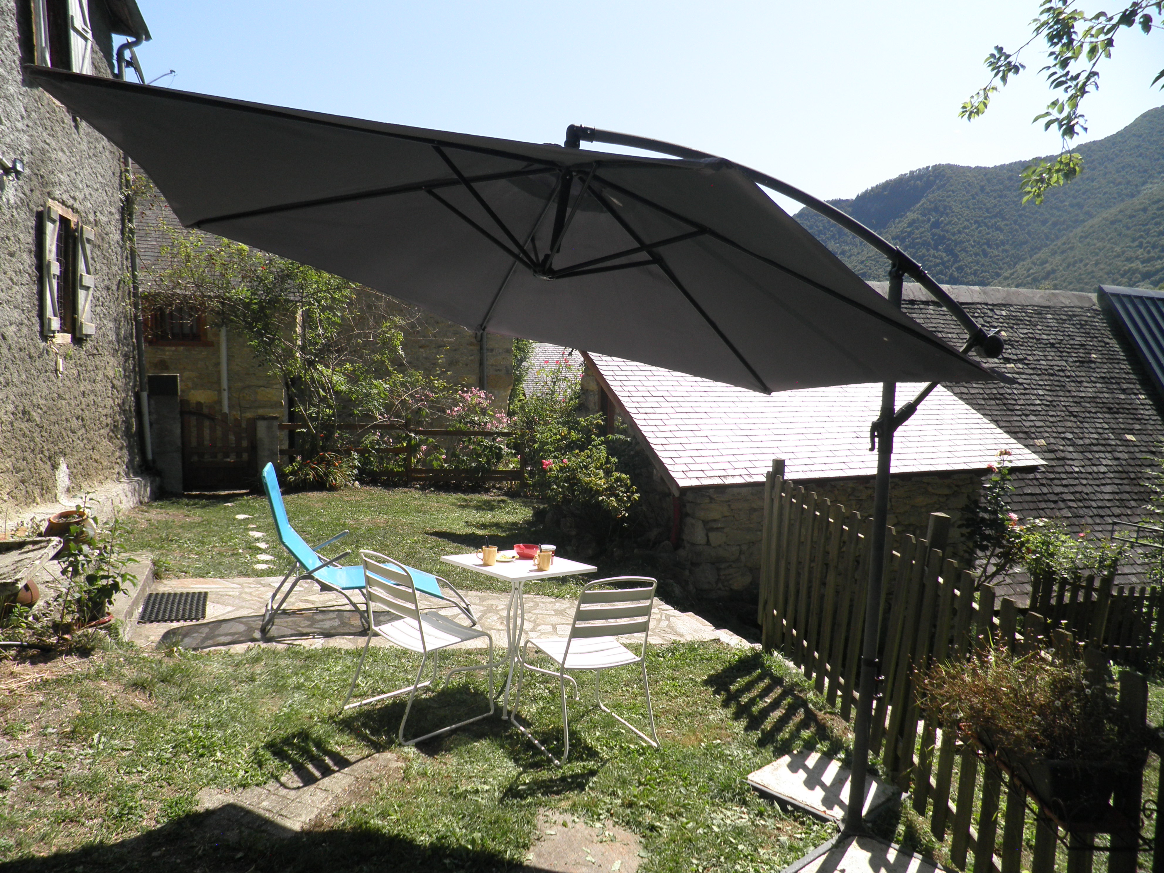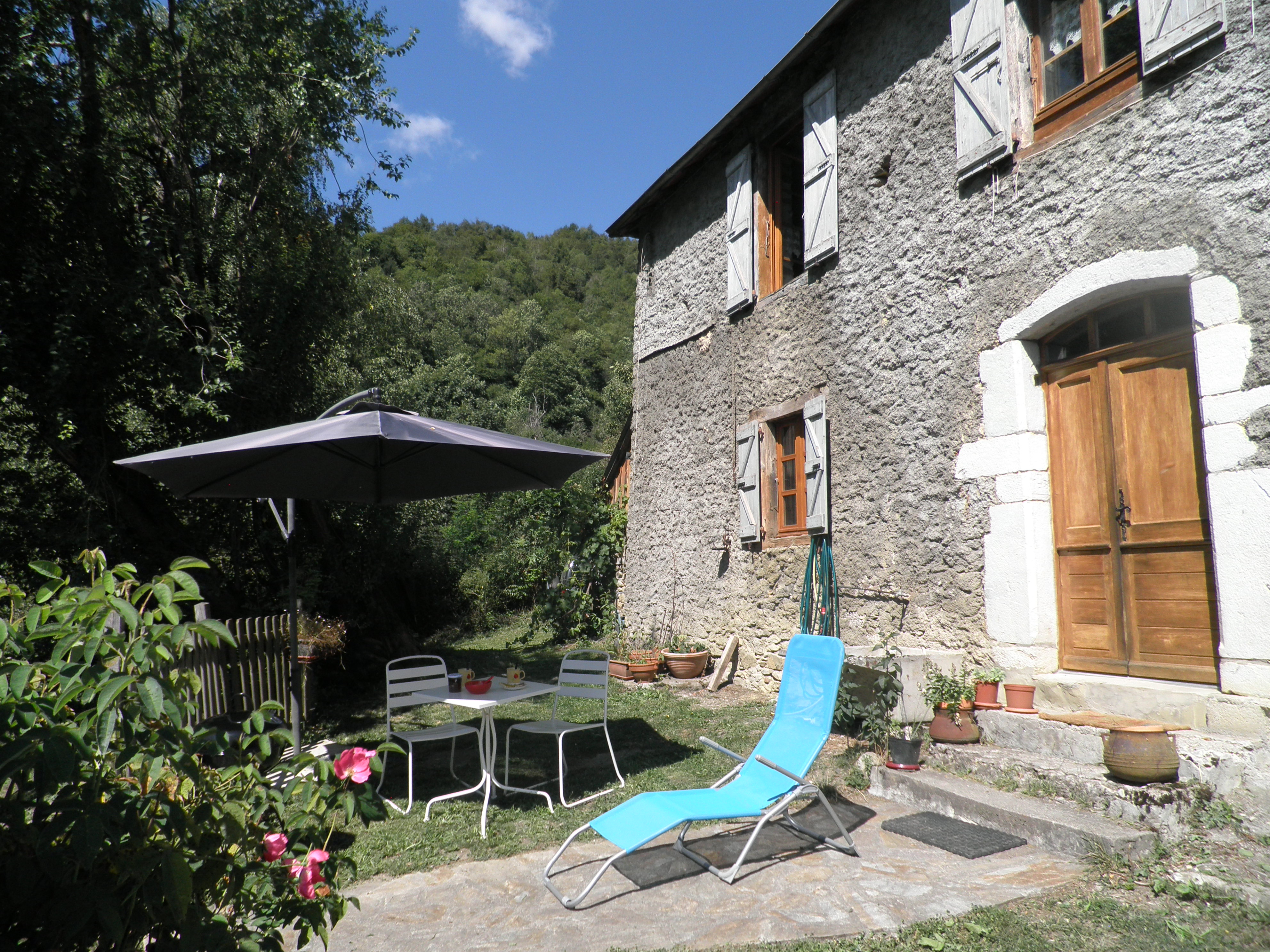 Looking for nature and peace and quiet? Come and recharge your batteries in our beautiful Biros valley! At an altitude of 900m, the Andourra gite (classified as a 3* tourist residence and 2 ‘épis’ by Gites de France, Bonnes adresses 2023, 2024 and 2025 on gites.fr) has been renovated using natural materials (stone, wood, terracotta). Its rooms are equipped with air conditioning, a fireplace in the living room, and a garden (with pergola and wooden terrace), sheltered from view and not overlooked, adjoining a meadow that slopes down to the stream.