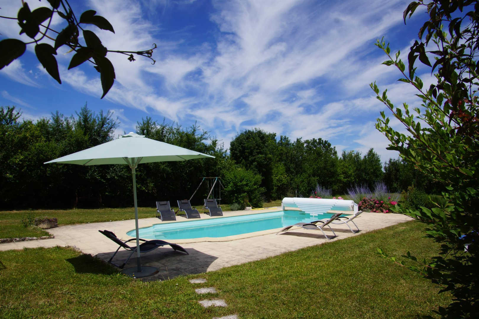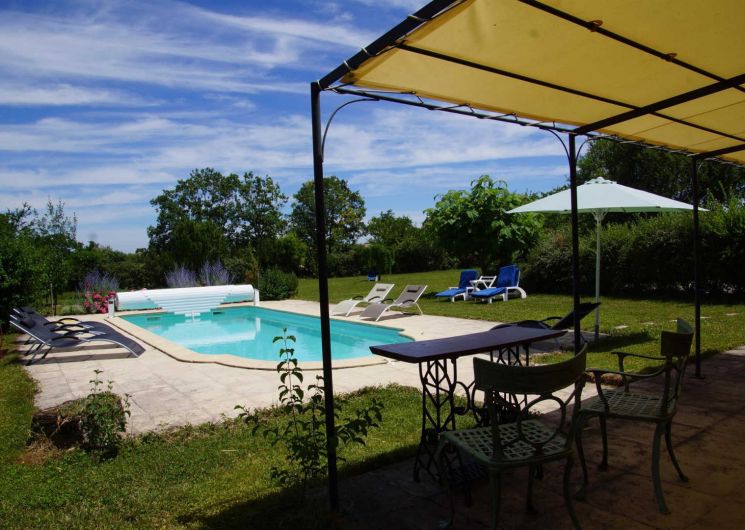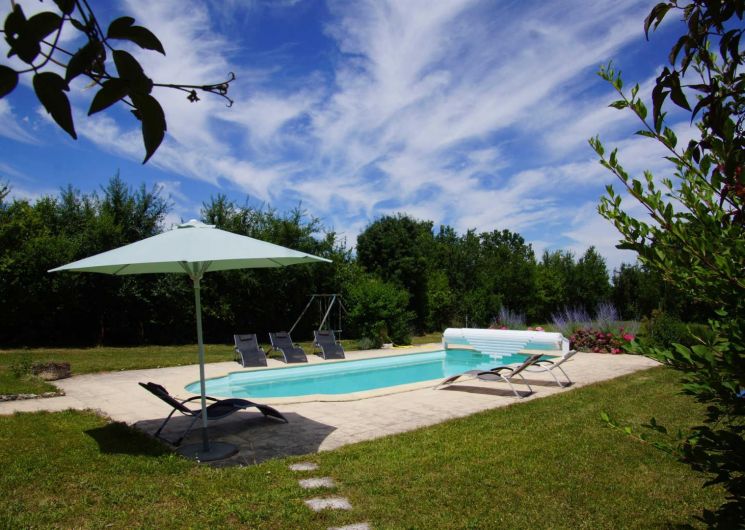 Grand gîte indépendant pour 8/10 personnes, avec vaste jardin (2000 m²), terrasses couvertes (salon d’été), piscine privative (9x4m), portique, ping-pong, boulodrome. Un parking privatif vous permet de garer vos véhicules. Réservation au 06.71.23.47.46.