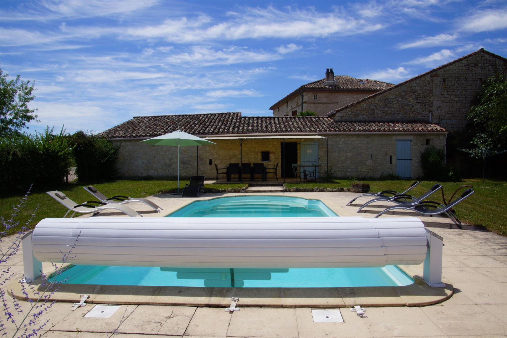 Cette maison de caractère en pierres de pays vous offre ses vastes volumes autant extérieurs qu’intérieurs, où chaque membre de la famille pourra vivre ses vacances à son tempo et au gré de ses envies. Pour vos moments de détente ou de solitude, deux terrasses couvertes et une tonnelle au bord de la piscine privative vous accueillent. La cuisine d’été, aménagée dans l’ancien four à pain, vous permettra de profiter au maximum des belles journées. Réservation possible au 06.71.23.47.46.