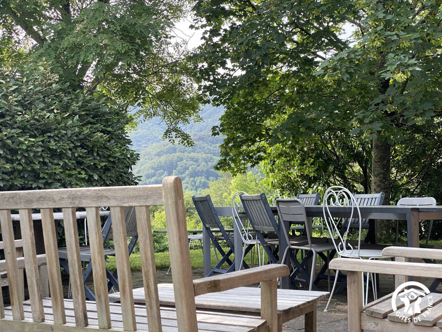 La grande salle du rez-de-chaussée ouverte par ses baies vitrées sur la terrasse ombragée et son remarquable panorama, vous est réservée. Vous y prendrez vos repas et profiterez pour vous détendre des fauteuils du salon, sa télévision, sa bibliothèque enrichie de nombreux ouvrages nature et tourisme et de son coin bar (avec réfrigérateur).
