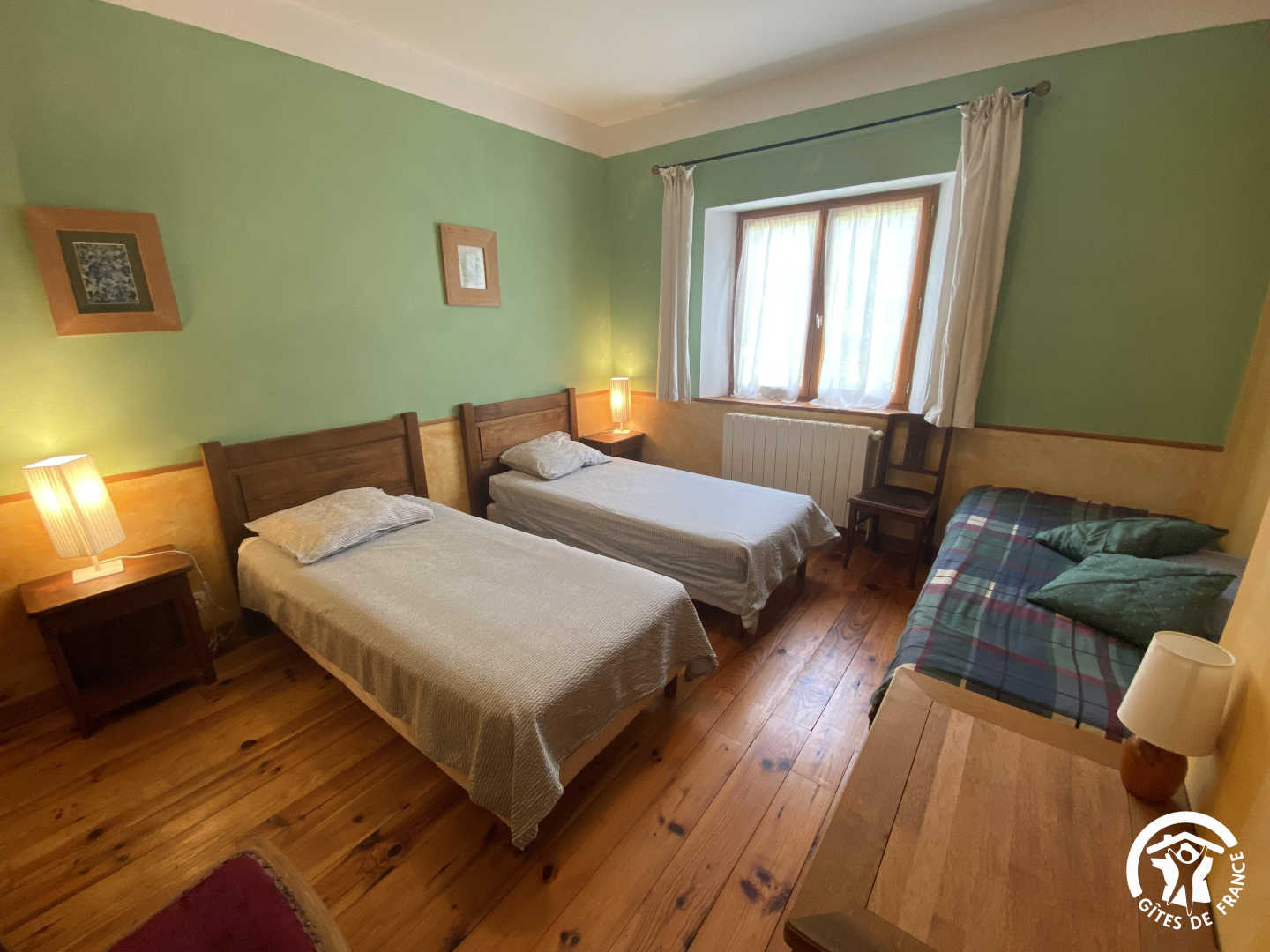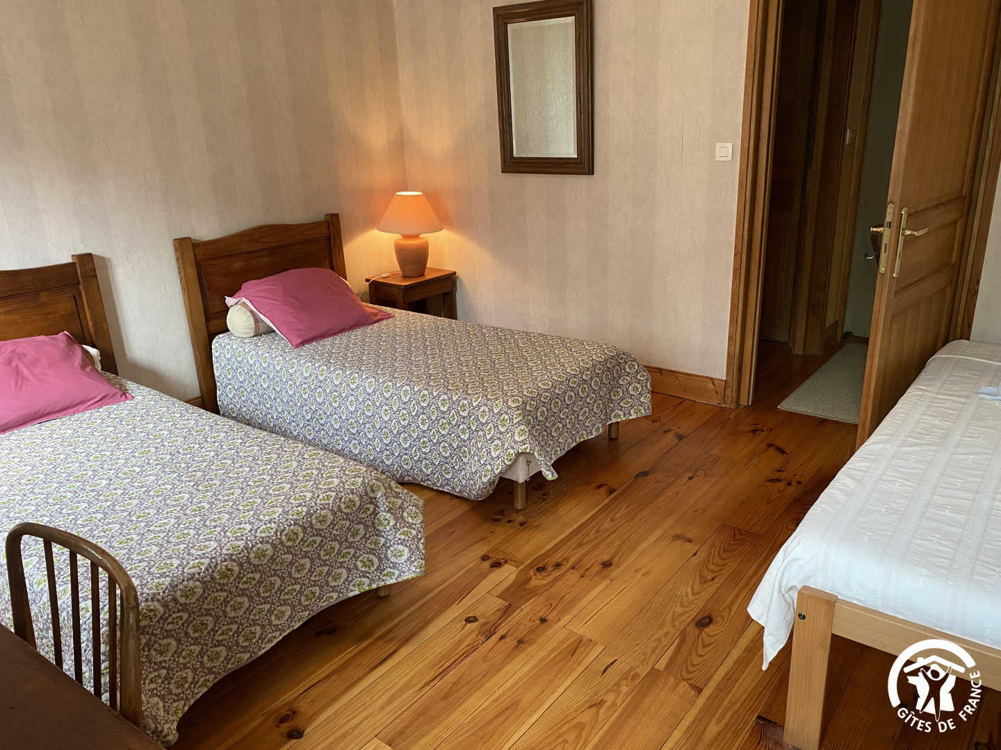 A l’étage les trois chambres. Une quatrième s’ajoute si besoin à l’une d’elle pour former l’ensemble famille qui peut accueillir jusqu’à cinq personnes. Une petite cuisine est mise à disposition. Possibilité d’hébergement complémentaire sur demande.