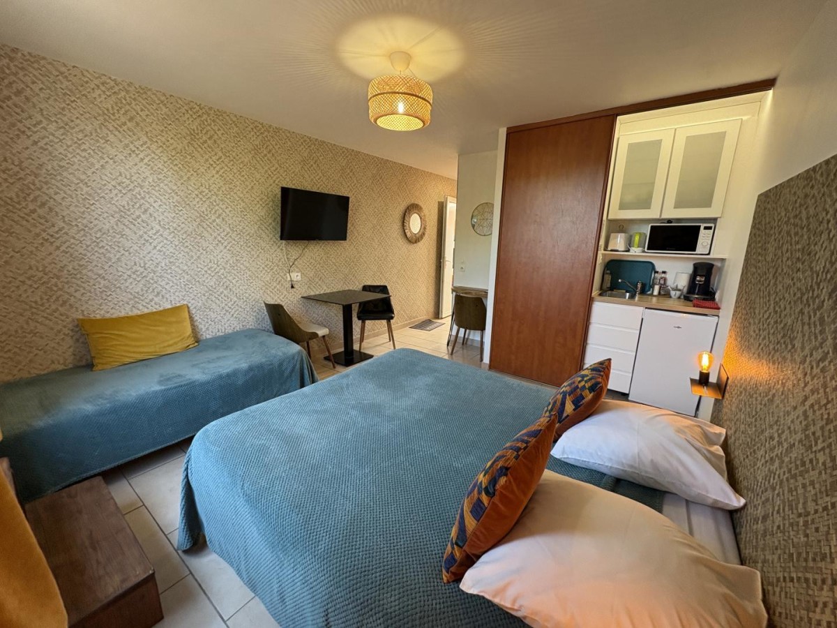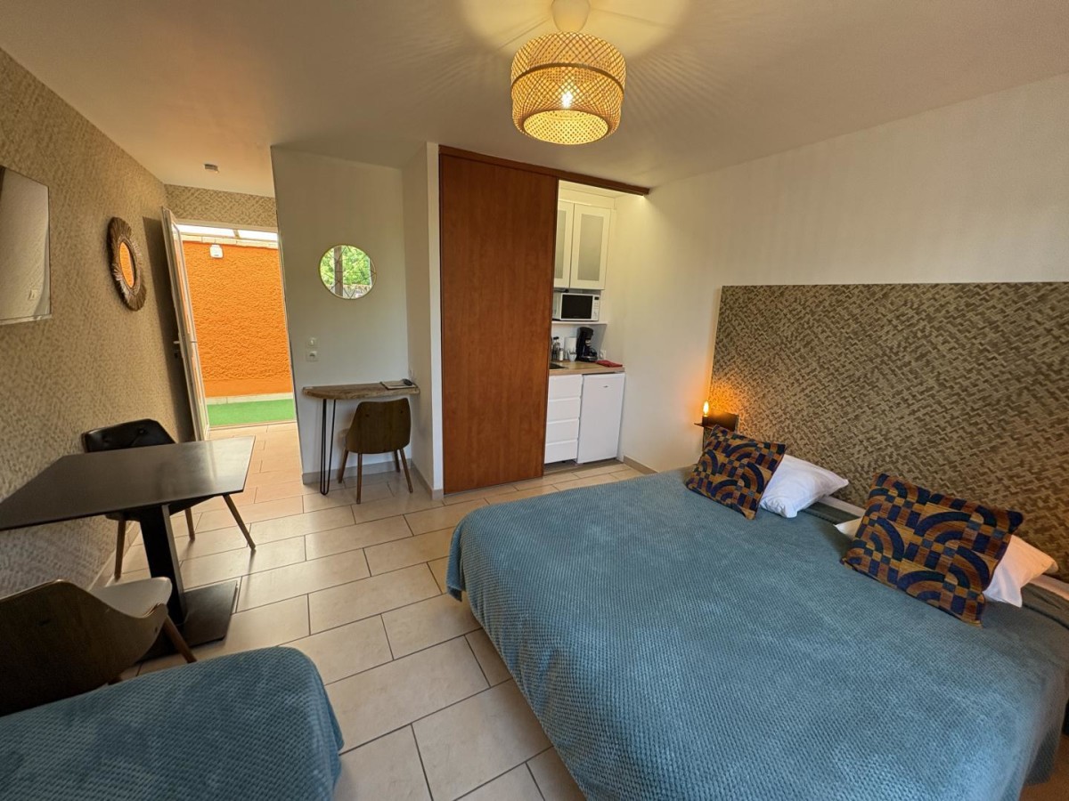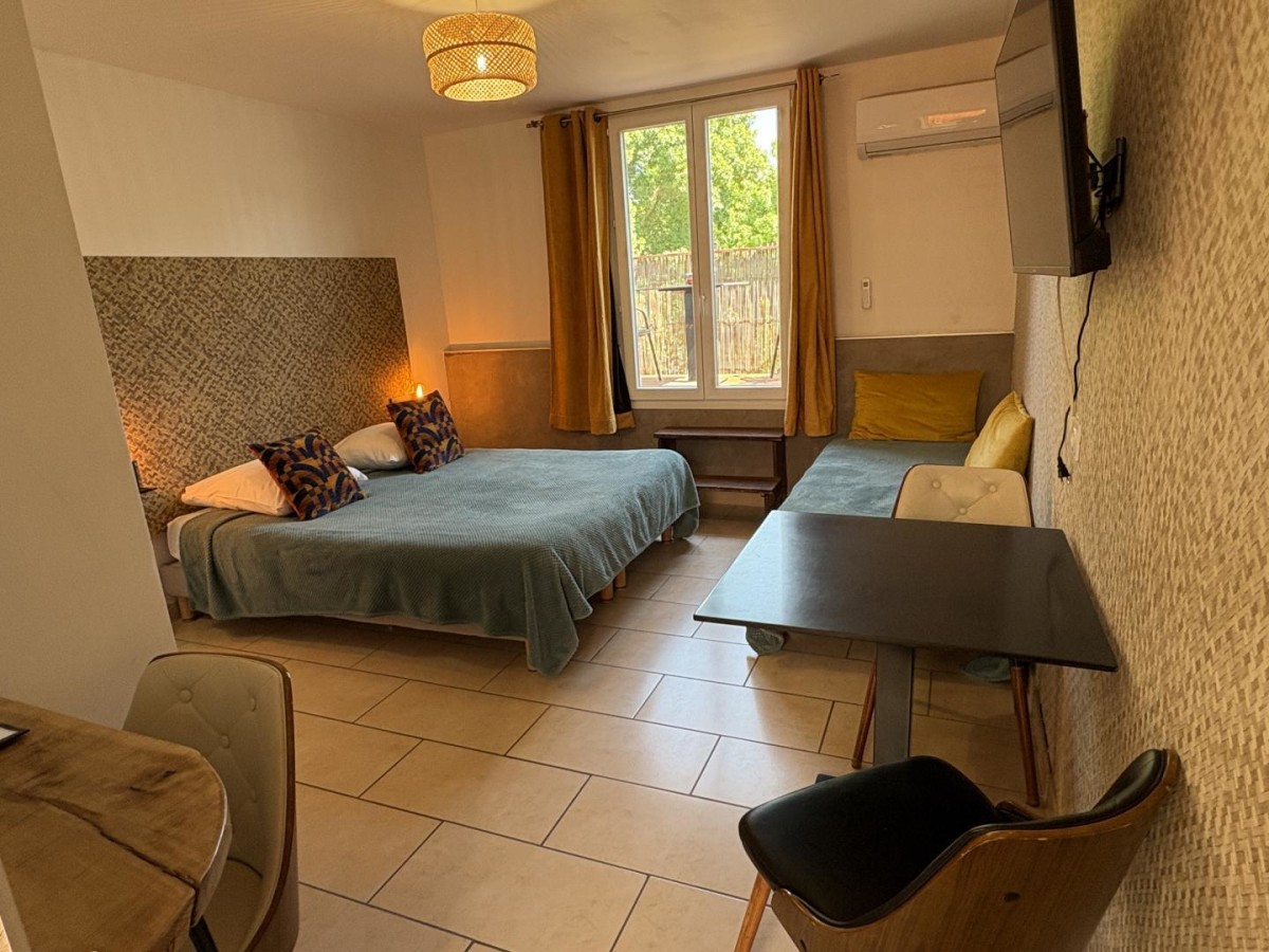 À seulement 20 minutes de Montpellier et des plages méditerranéennes, offrez-vous une parenthèse de calme au cœur d’un paysage typiquement languedocien. Cette maison d’hôtes vous accueille dans un environnement serein, entre garrigue et douceur méditerranéenne, tout en restant à proximité de l’effervescence urbaine et balnéaire. Chaque chambre, décorée avec soin, dispose de sa terrasse privative, idéale pour savourer un moment de détente en toute intimité. Sur place, vous profiterez d’équipements pensés pour votre bien-être : une splendide piscine avec alcôves, accessible toute l’année (chauffée de mi-avril à fin septembre), un sauna en libre accès (sur réservation), un babyfoot, un billard, ainsi que des équipements sportifs. L’atmosphère y est à la fois conviviale et apaisante : l’adresse parfaite pour se ressourcer à deux ou en solo, entre terre et mer. À savoir : – Parking privatif sur place – Borne de recharge pour véhicule électrique (en supplément) – Petit-déjeuner – Accès à une buanderie commune avec les autres hébergements – Cette chambre allie élégance sobre et fonctionnalité pour un séjour tout confort. Parfaite pour un couple ou une petite famille, elle peut accueillir jusqu’à 3 personnes, grâce à son lit double (160×200 cm) et son lit simple (90×190 cm). Vous y trouverez tout le nécessaire pour vous sentir comme chez vous, climatisation réversible pour un confort optimal en toute saison, TV et Wifi pour vos moments de détente, cuisine d’appoint (Frigo, micro-ondes et cafetière senseo). La salle de bain indépendante assure votre intimité, et la terrasse privative vous invite à savourer un café au soleil. Séjour dans l’une des quatre chambres, selon les disponibilités au moment de la réservation.