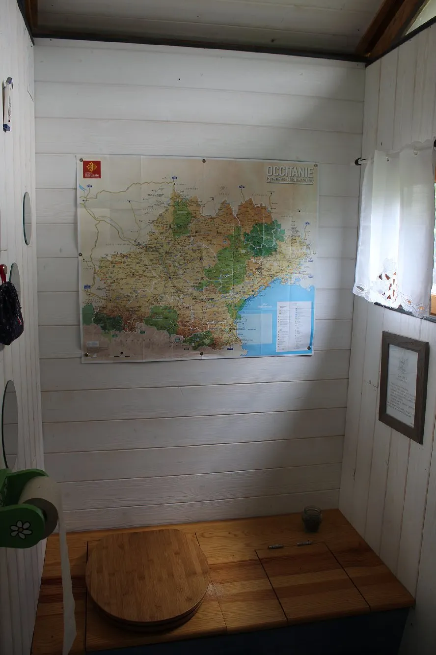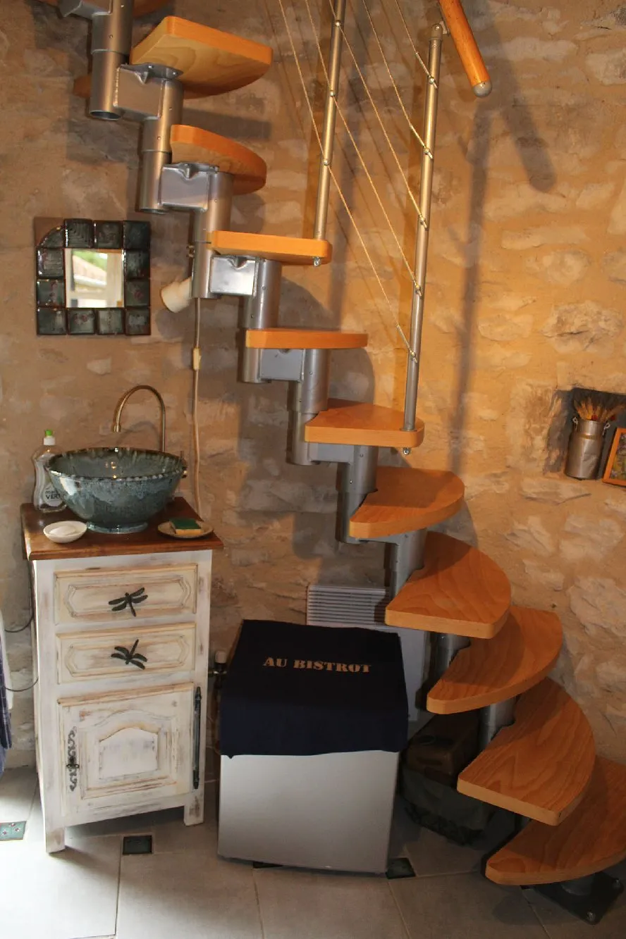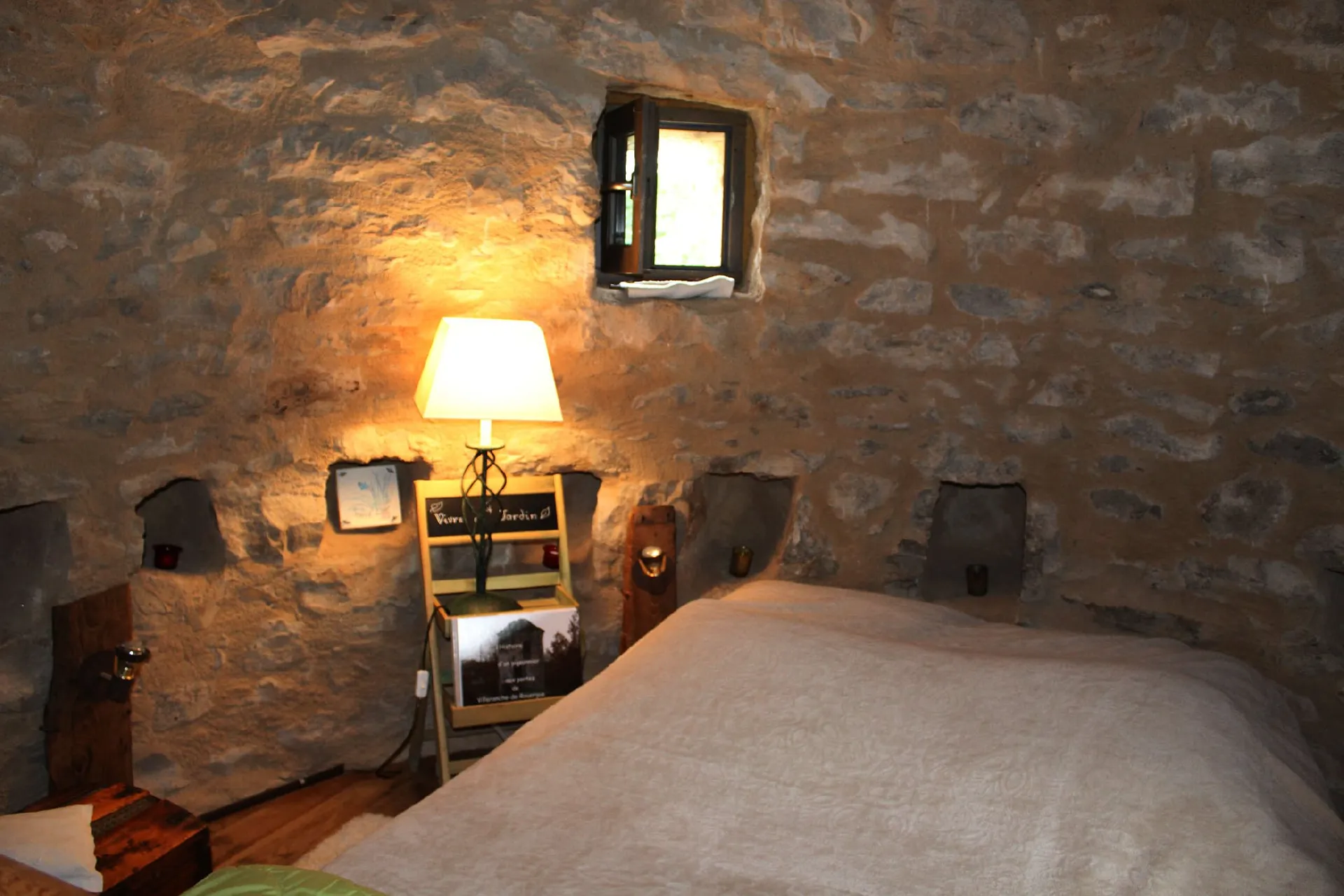 Pour accéder au pigeonnier, vous prenez l’escalier qui amène à la terrasse à la manière d’une cabane dans les arbres. A l’intérieur, 2 pièces : une salle avec lavabo, buffet et le nécessaire pour prendre un petit déjeuner et cuisiner. Un escalier de meunier vous permet d’accéder à la chambre voutée avec un lit pour 2 personnes (130×190). La salle de bain se trouve aux pieds de l’escalier, elle est constituée d’une douche à l’italienne et d’un WC sec.