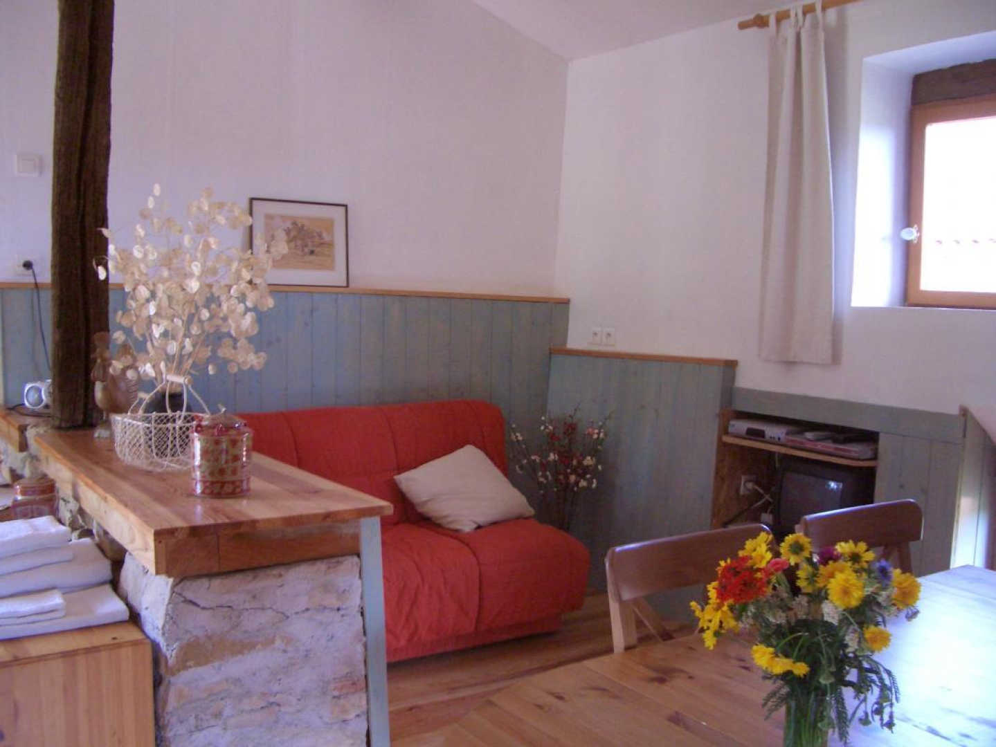 Aménagé dans l’ancien poulailler rénové dans la tradition, ce gîte vous ravira avec son confort simple. Il y a deux marches en contre-bas pour accéder au gîte.