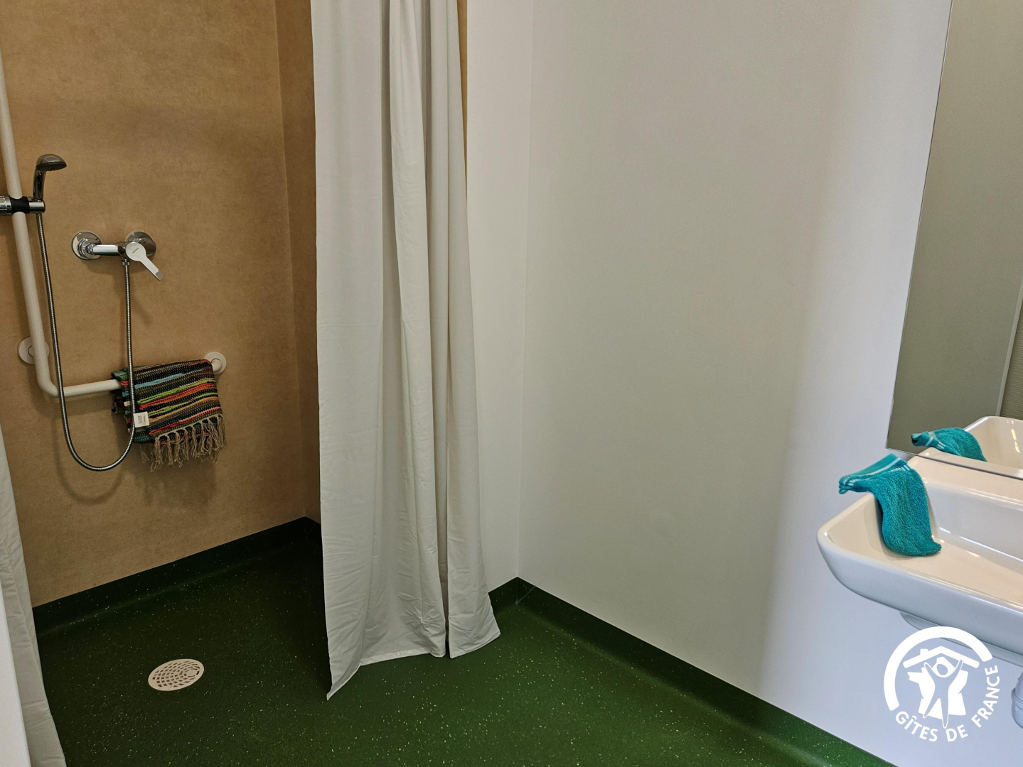 – chambre avec lit double 140x190cm, salle d’eau privative accessible aux personnes à mobilité réduite (douche, vasque)