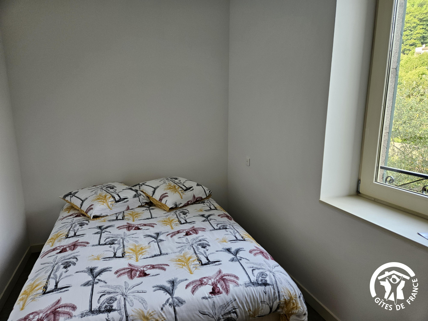 – grande chambre pour trois personnes, lit double en 140x190cm + lit simple en 90x190cm, vue sur la montagne et le village