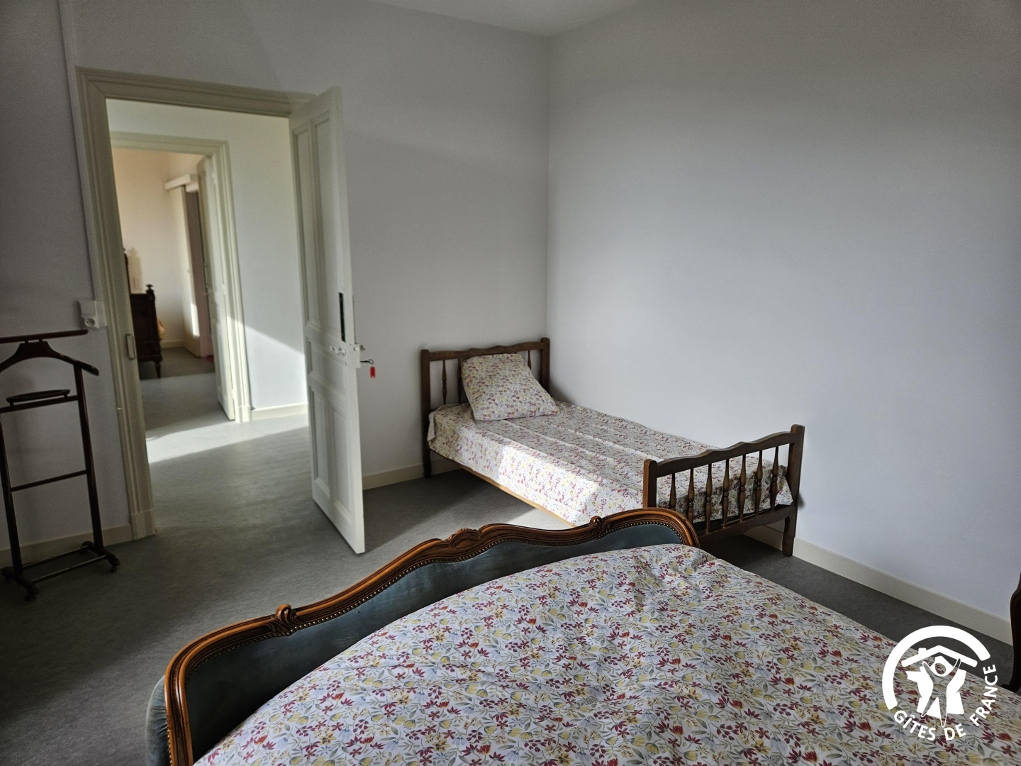– grande chambre pour trois personnes, lit double en 140x190cm + lit simple en 90x190cm, vue sur la montagne et le jardin