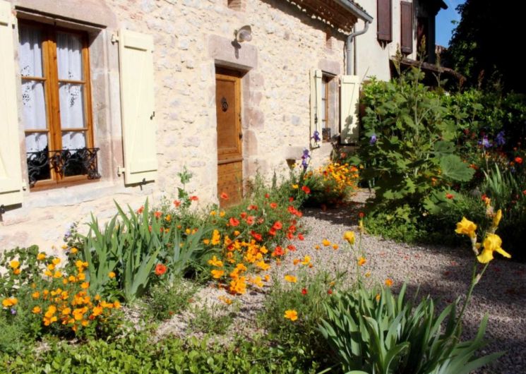Maison de village avec joli jardin et terrasse privative couverte, en dessous du gîte. Salon de jardin, barbecue, ping-pong.