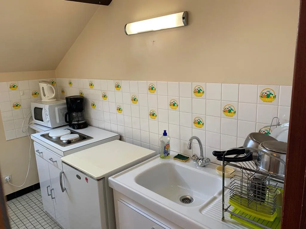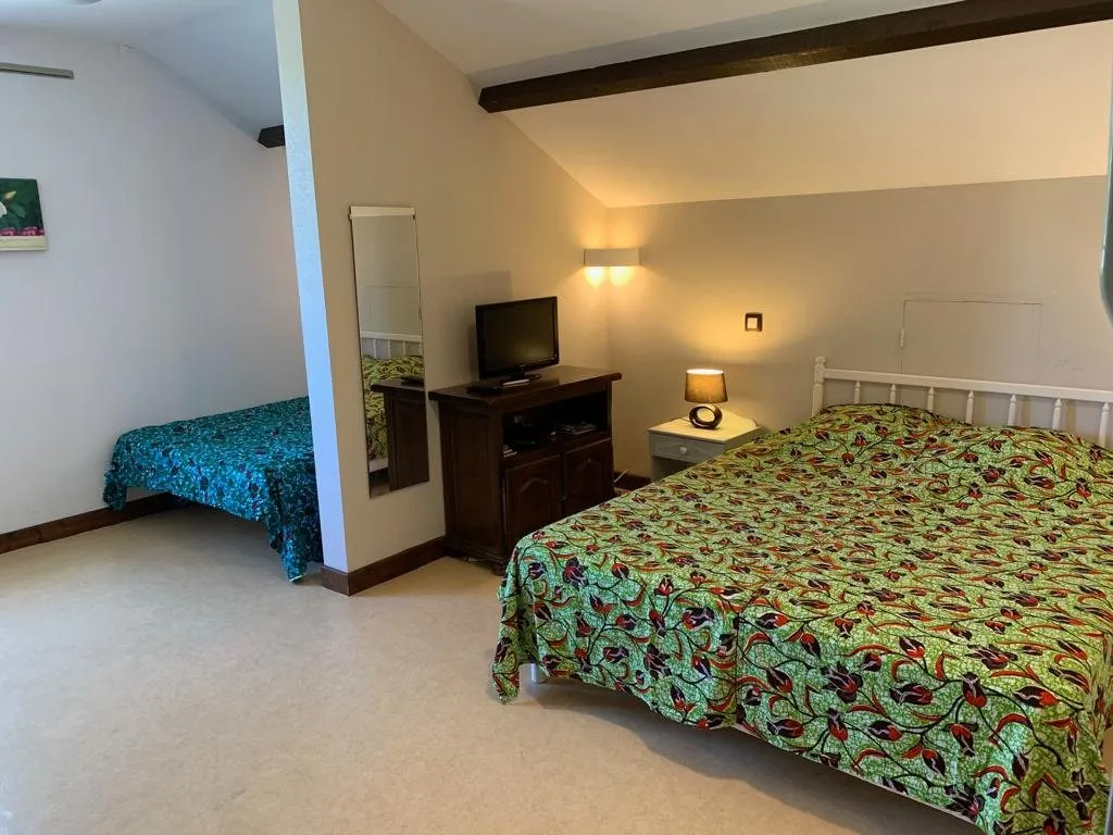 Entrée indépendante. A l’étage, sanitaire, petite cuisine, lit en 160 + lit en 140. Garage, jardin, wifi.