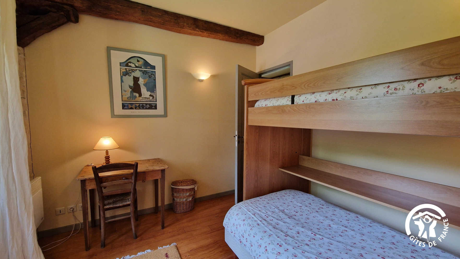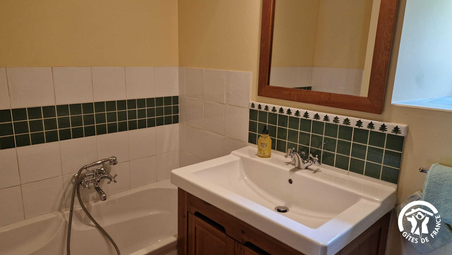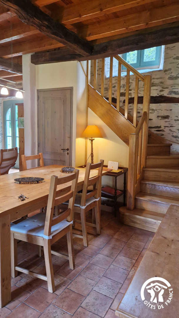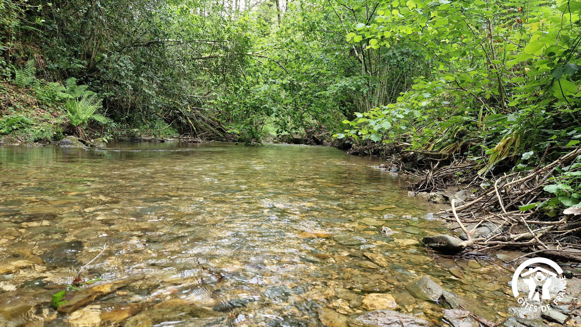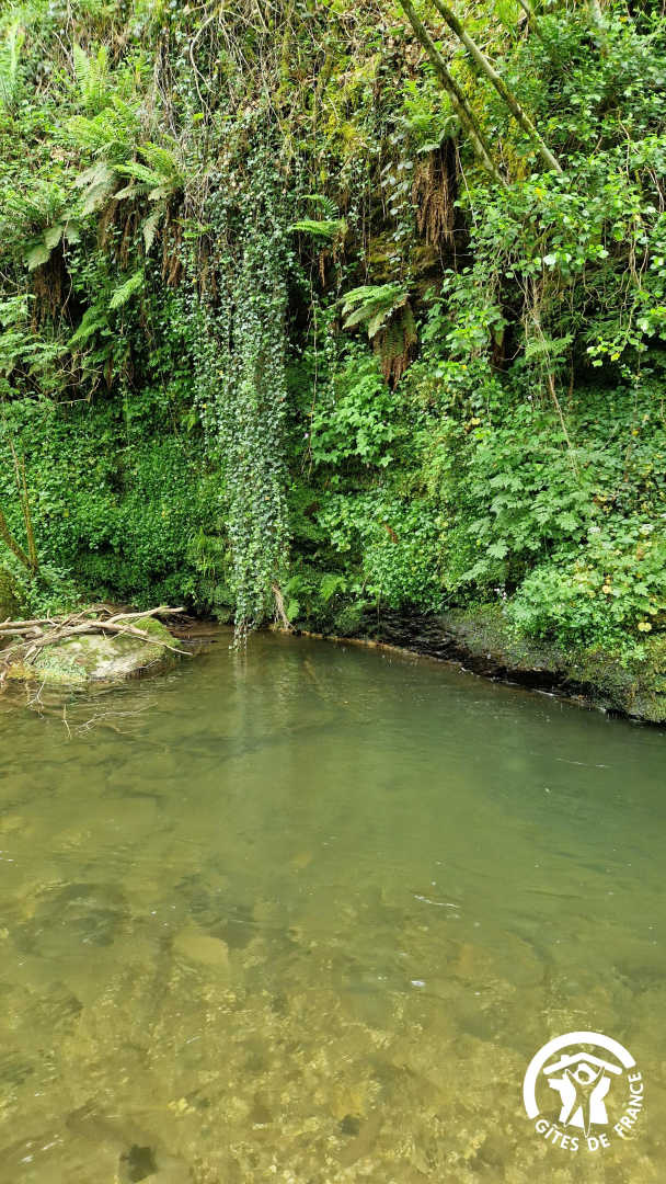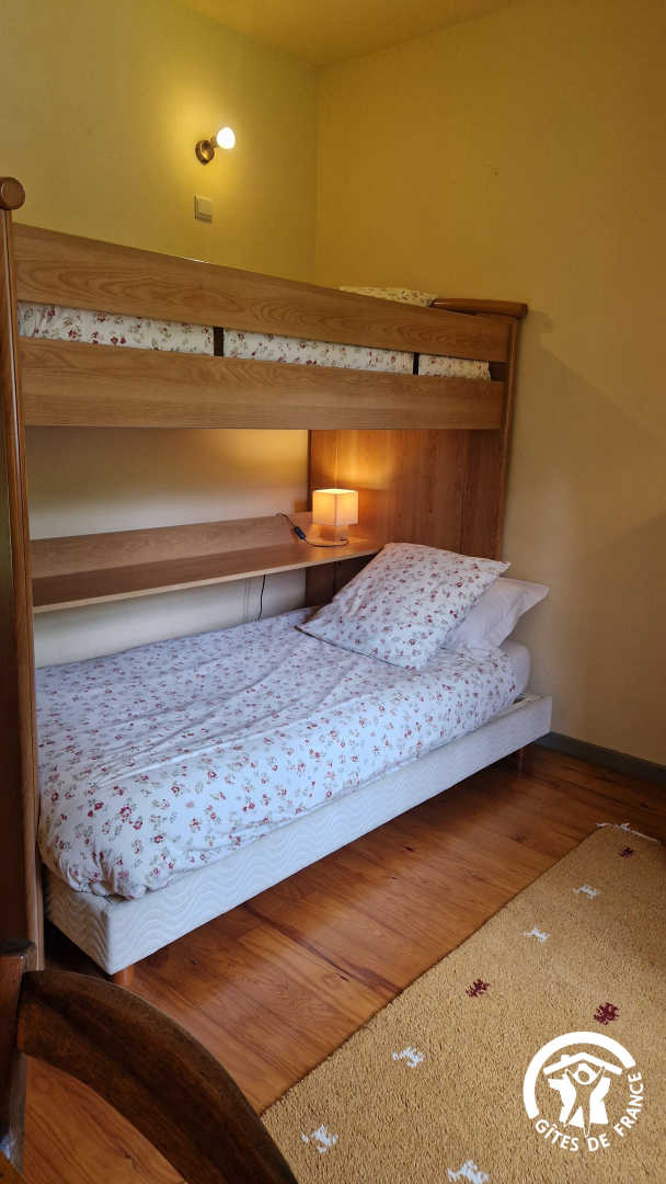 Indep. Gr. fl.: kitchen, living-rm/ dining-rm (sofa-bed), WC. 1st fl. : 3 bdrms (1 bd 5ft2, 2 twin bds 2ft6, 2 bds 3ft indep), bathrm, shower rm, WC. Electr.heating stove in open fire. Washing mach, tumble dryer, dishwasher, TV-DVD, micro-wave, telephone. Grounds, terrace, garden table & chairs, BBQ, parking. Bed linen, towels and house linen: complimentary service. Animal not allowed. 6 mountains bikes available. The house is deeply situated in full nature, in an exceptional setting, bordered by a wild trout’s river, and a hiking path. Set in a clearing surrounded with woods, one has access thru a XVIIth century embossed bridge. Comfortable, pleasant stay in any season.