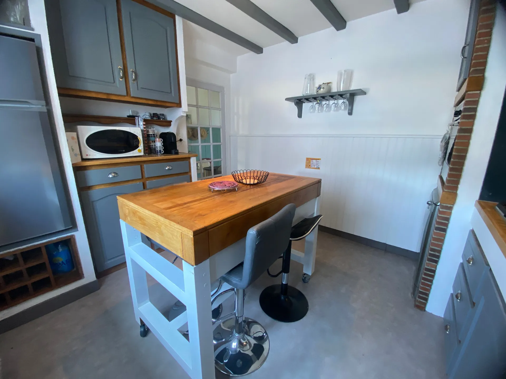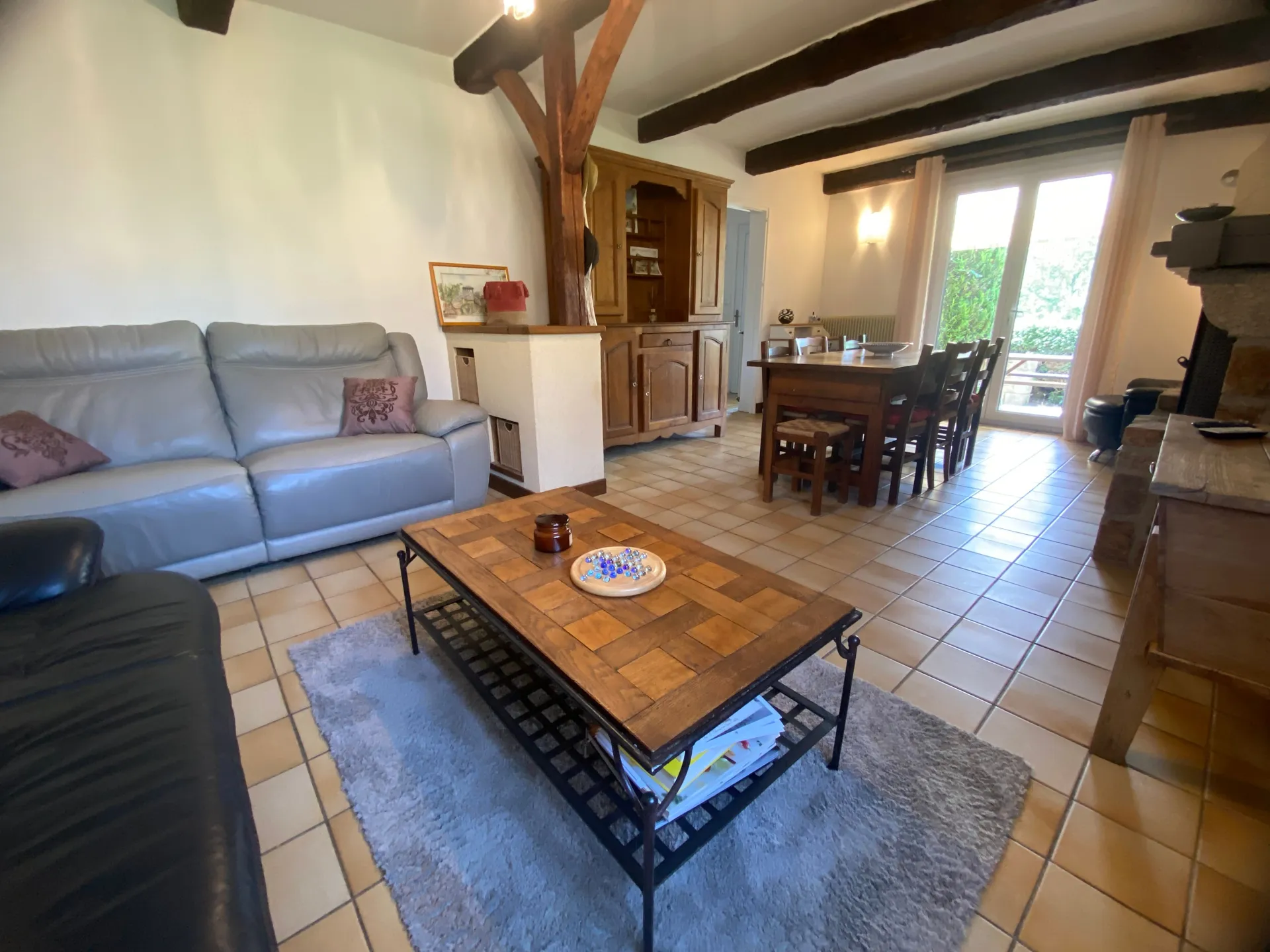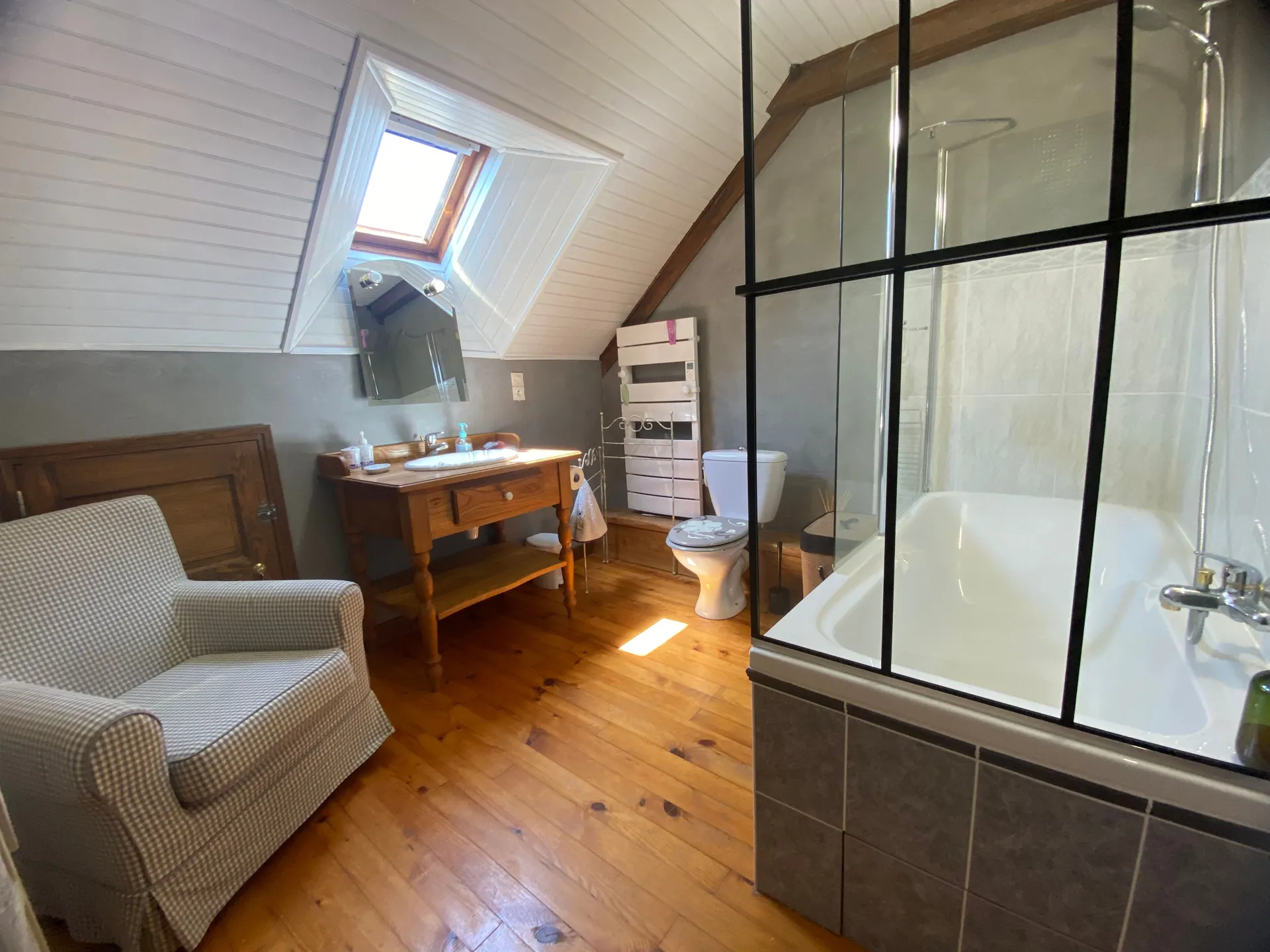 Gîte indépendant, pour 7 à 9 personnes, aménagé sur 2 niveaux, dans un hameau, à la campagne. Au rez-de-chaussée : cuisine (lave-vaisselle) , salle à manger – salon (canapés, fauteuils, cheminée, télévision, accès internet wifi), chambre 1 (1 lit 140), salle d’eau (1 vasque, douche), wc indépendant. Au 1er étage mansardé : chambre 2 (1 lit 140 avec coin-détente), chambre 3 “dortoir” (1 lit 140 et 1 lit mezzanine 90, canapé BZ convertible 140), salle de bain (1 vasque, baignoire, wc). Chauffage central (gaz), terrasse privée non close (barbecue, salon de jardin), terrain privé clos, abri couvert (ping-pong), garage (lave-linge), parking privé 3 places. Draps et linge de toilette fournis. Chauffage en supplément pendant la période du 1er octobre au 15 avril : 10€ par nuit. En option : ménage 60€. Animaux acceptés avec supplément : 5€ par jour. Équipement bébé sur demande.