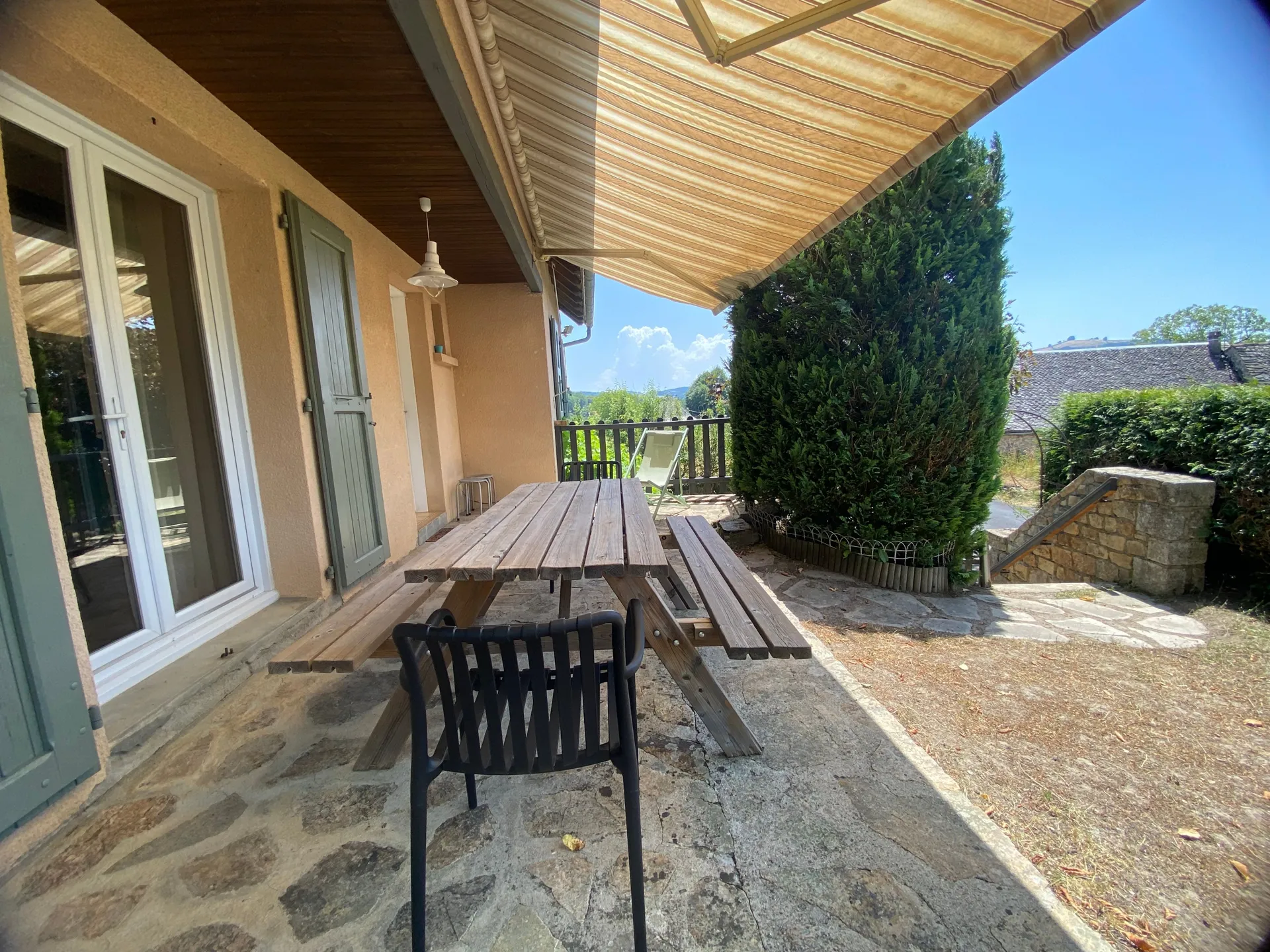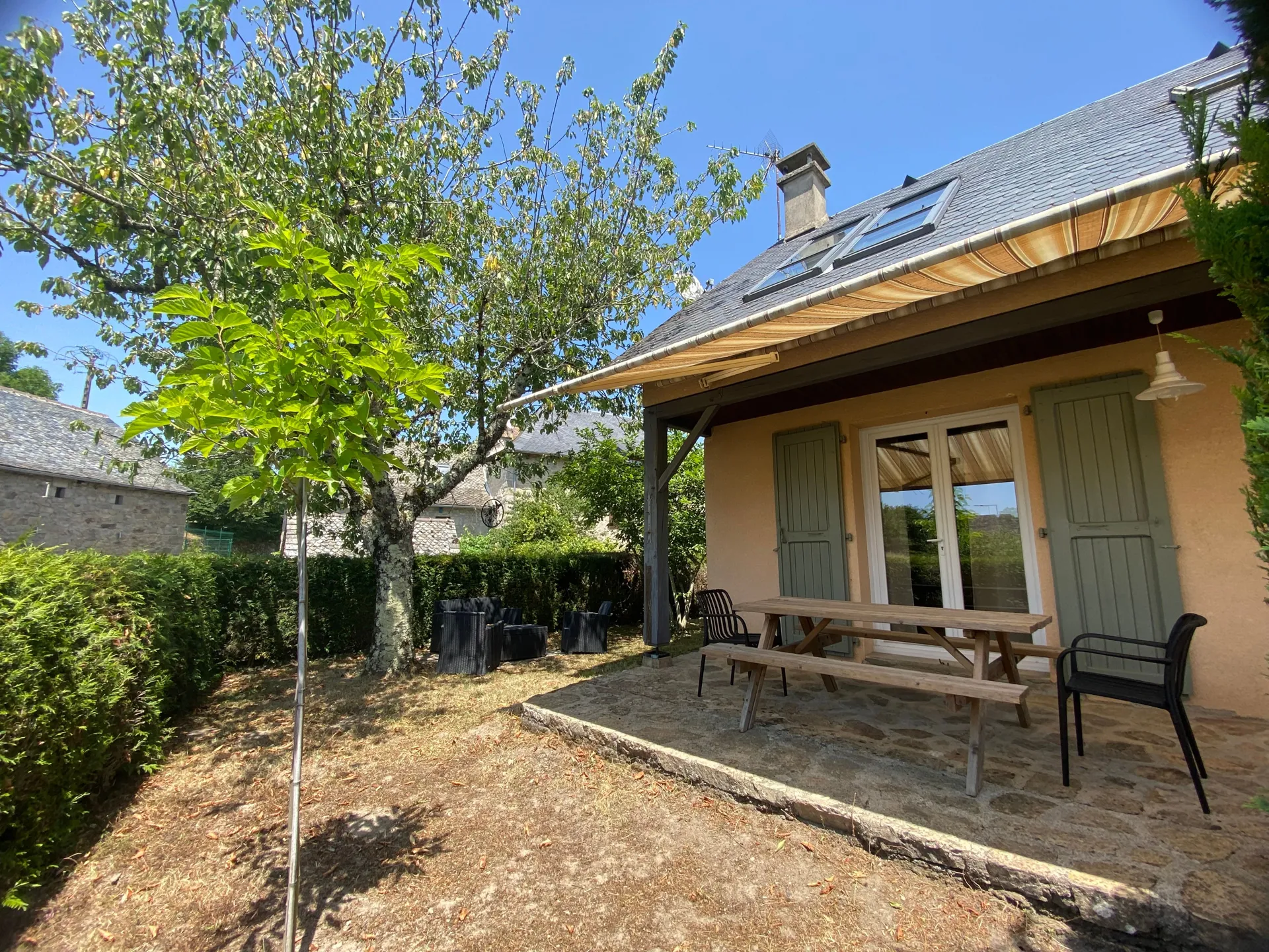 Proche du Cantal et du pays du Laguiole, Estaing ou Espalion, face à un panorama de verdure, cette maison indépendante joliment rénovée, ouvre sur une terrasse et un jardin ombragé clos idéal pour passer des vacances en toute tranquillité. L’espace, vous en aurez aussi dans le séjour où trône la cheminée et vous découvrirez la cuisine parfaitement équipée pour nourrir de joyeuses tablées. Pour les balades beaucoup de chemins de randonnées balisés, l’Aubrac est tout proche. Nombreux sites et villages classés sont à découvrir : le site de Bes-Bédène à deux pas, le magnifique village de Valon avec son château, Conques, Estaing, Ste Eulalie d’Olt, le musée Soulages à Rodez. Tout près, pour se rafraichir en cas de chaleur, le lac de St Gervais avec ses 16 Ha et sa plage surveillée et jeux, piscine municipale du Lauradiol. Nombreux lacs et ruisseaux pour les pêcheurs.
