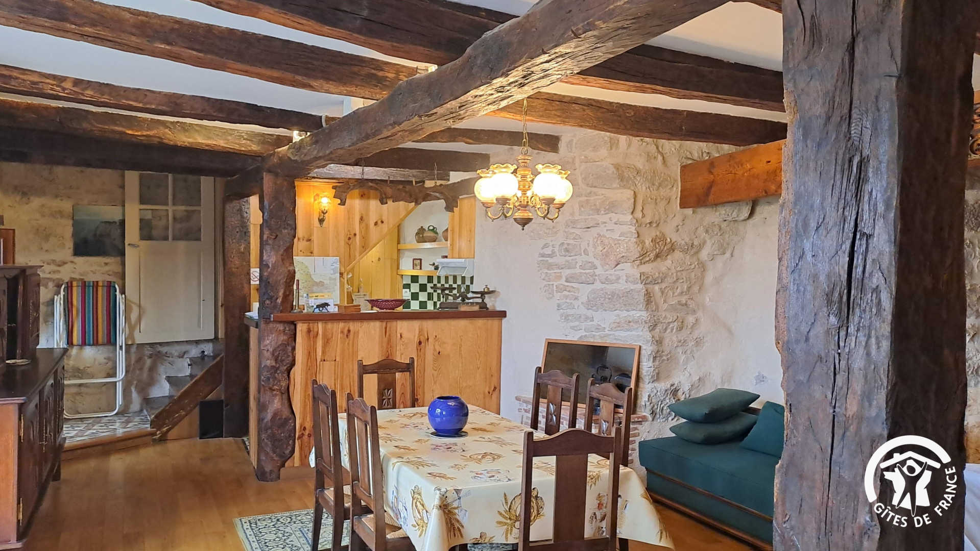 Véritable maison de caractère à l’orée du vieux village, mitoyenne à la maison des propriétaires mais aucun vis-à-vis. Le gîte bénéficie d’une exposition plein sud qui vous permettra d’apprécier sa terrasse couverte avec vue sur les collines environnantes.