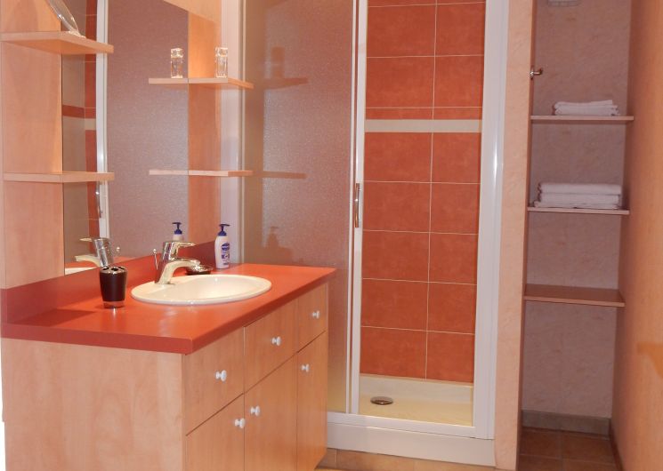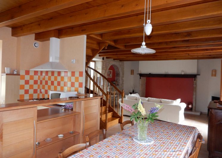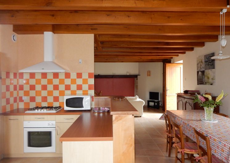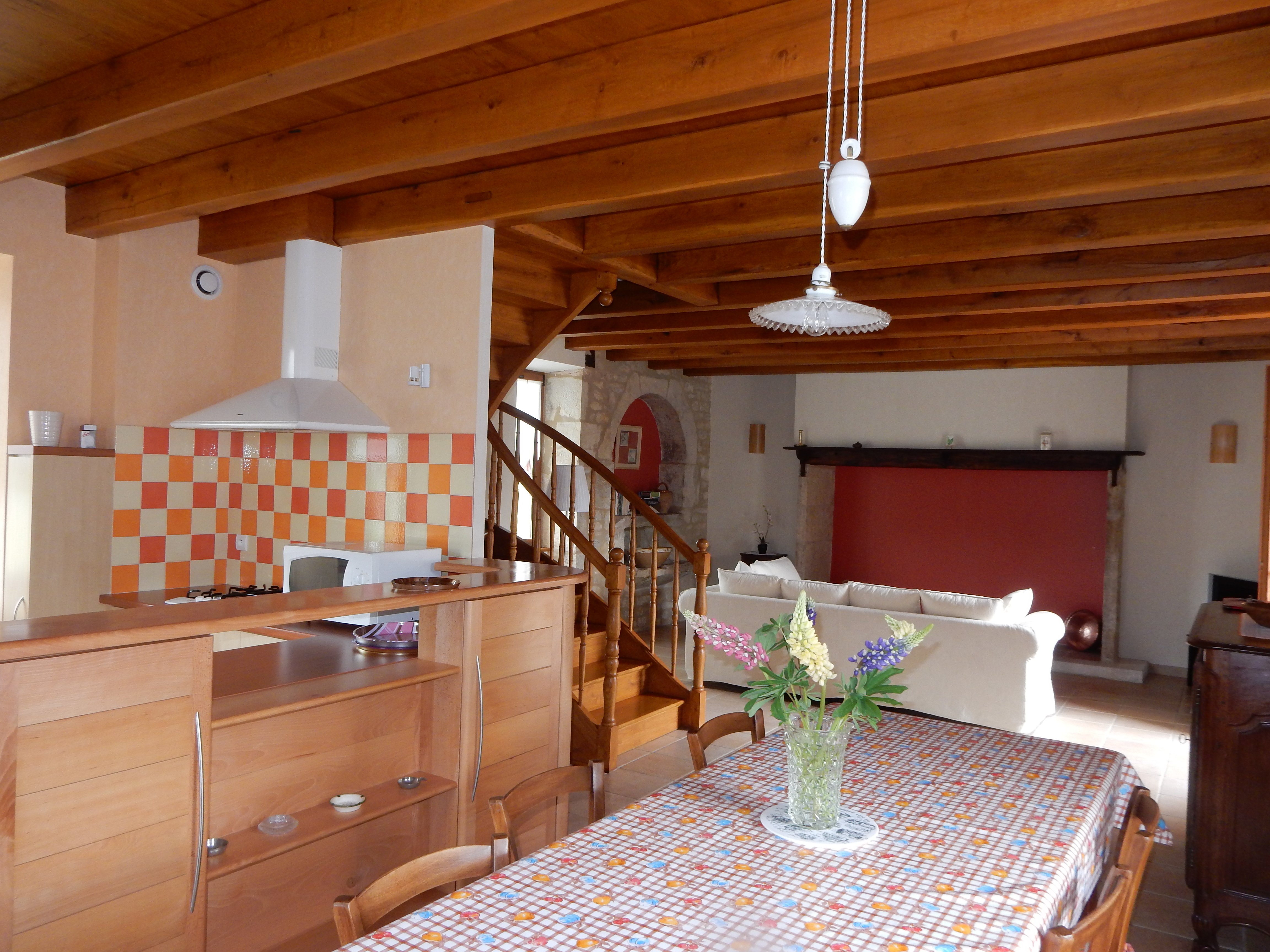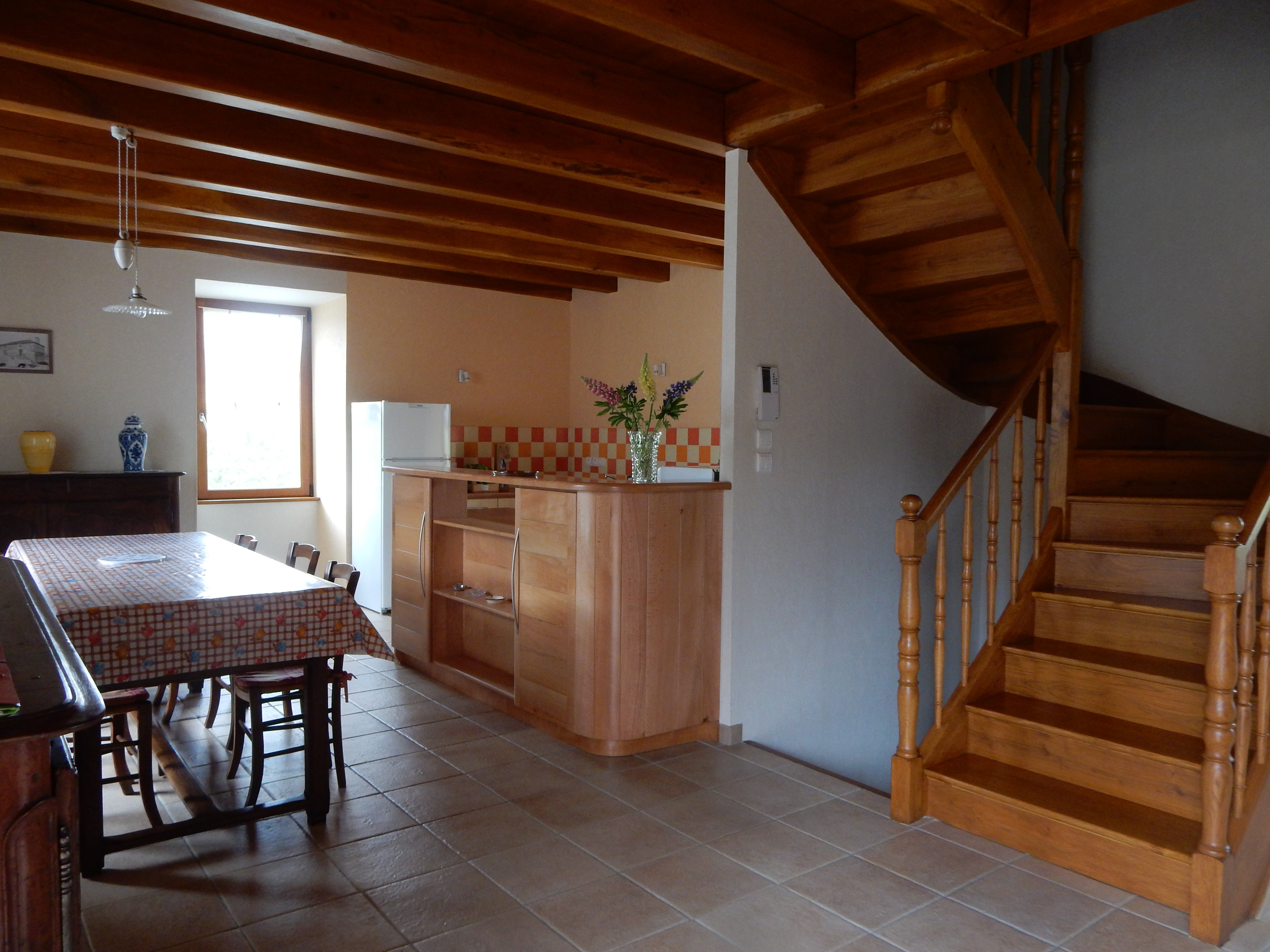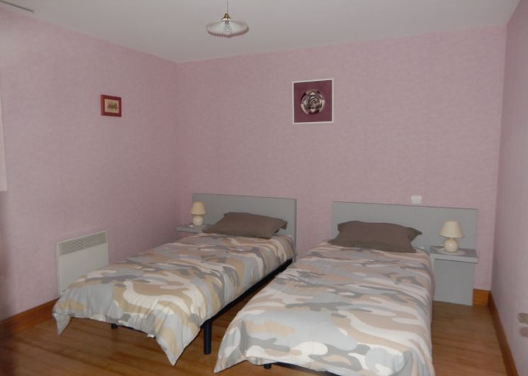 Accès au gîte par un escalier. Au rdc, une grande pièce à vivre avec salon, salle à manger et cuisine équipée (lave vaisselle, four). Au niveau -1, 2 chambres spacieuses avec pour la 1ère un lit 2 pers en 140 et la 2eme 2 lits 1 pers en 90,un lit bébé et des rangements. A l’extérieur, un vaste jardin non clos.