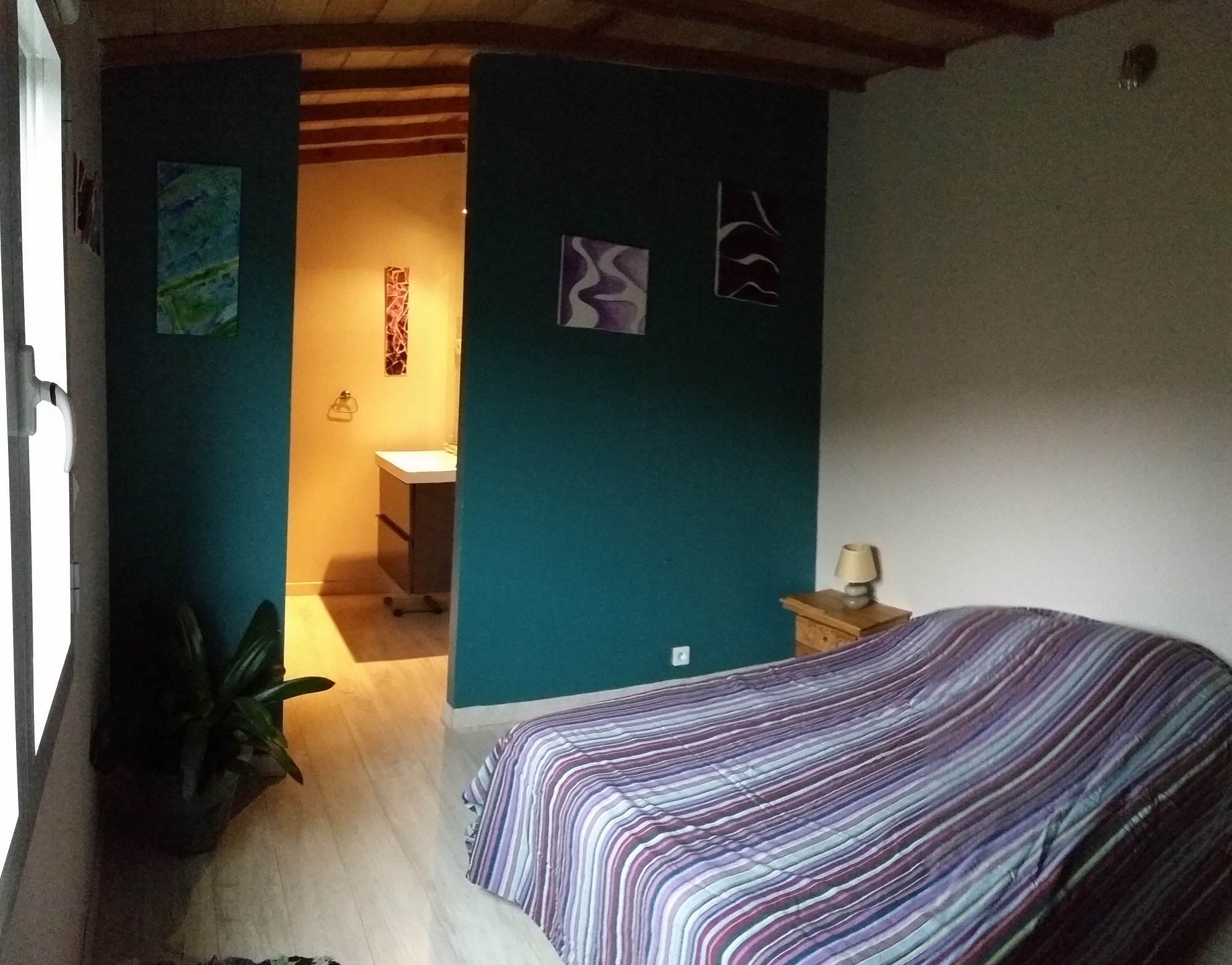 de blauwe kamer met 1 tweepersoonsbed + wastafel + douche