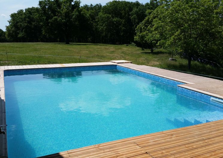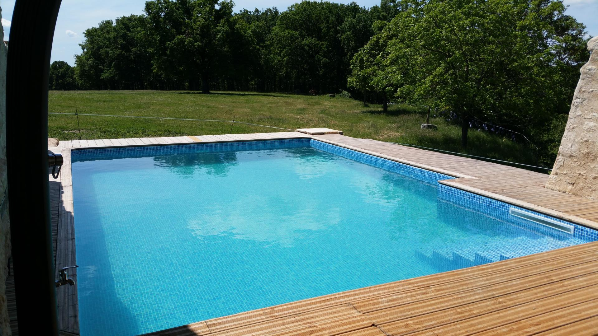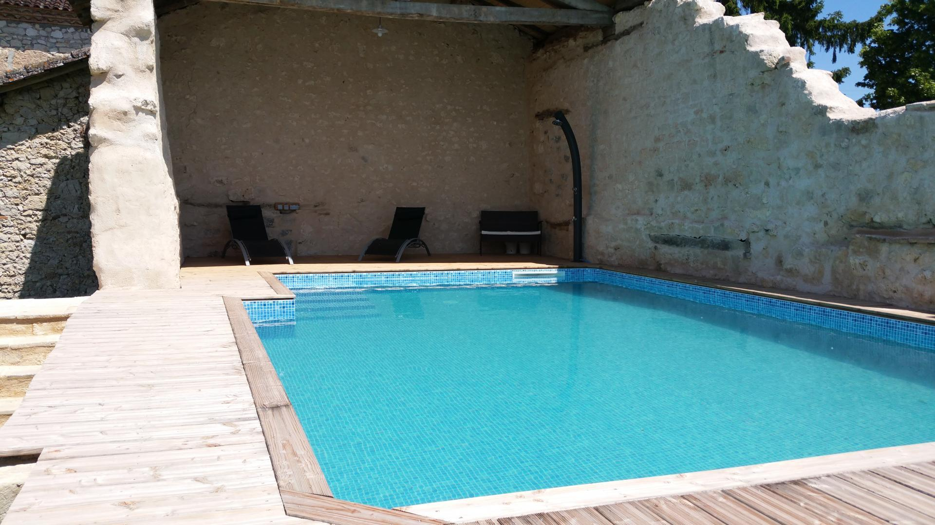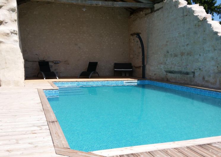 Magnifique piscine privative cernées de murs en pierres (dimensions 8x5m avec fond plat de 1,40m), ouverte de juin à septembre.