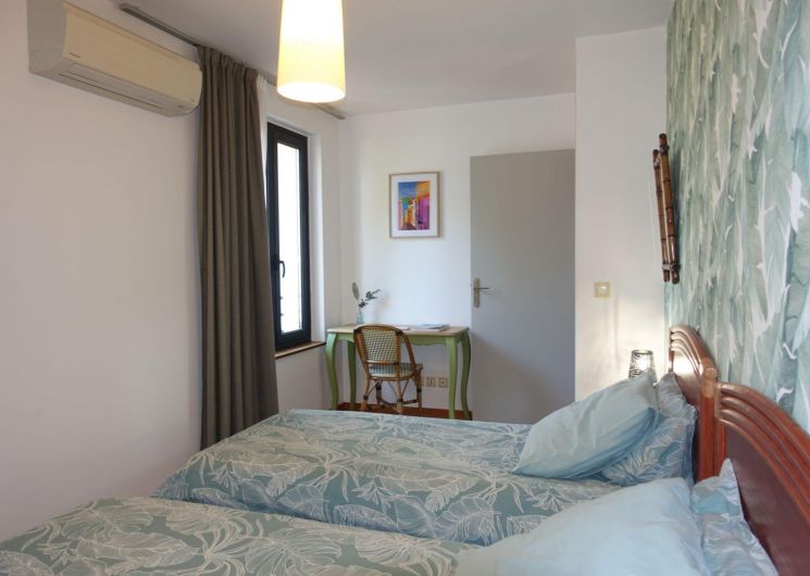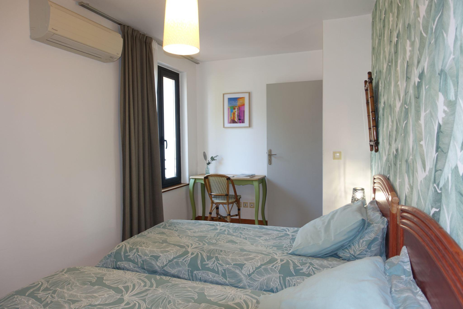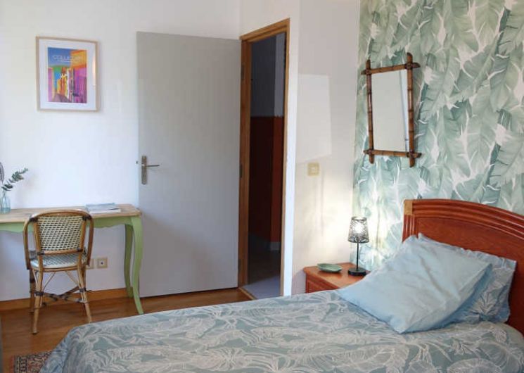 You’ll love wandering through the narrow streets, lined with colourful facades, leading up to the church and the Belvédère du Château, with its exceptional views. You’ll be just a few kilometres from the beaches of the Côte Vermeille, Argelès-sur-Mer, and cultural and historic sites such as Collioure and Castelnou castle. Located on the first floor, the bedroom has 1 bed 140×190 – Shower room with WC: shower and washbasin. Outside: garden, enclosed motorbike and bicycle shed. Unenclosed private parking. Comfortable and spacious, our guest room is fully insulated and equipped with a heat pump and solar water heater.