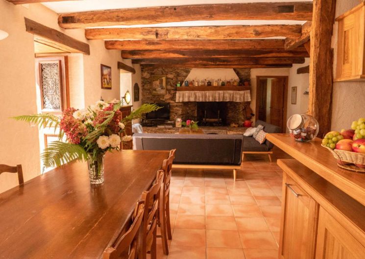 Gîte indépendant ouvrant d’un côté sur la cour et le jardin (portique), et de l’autre sur la terrasse dominant la cascade.