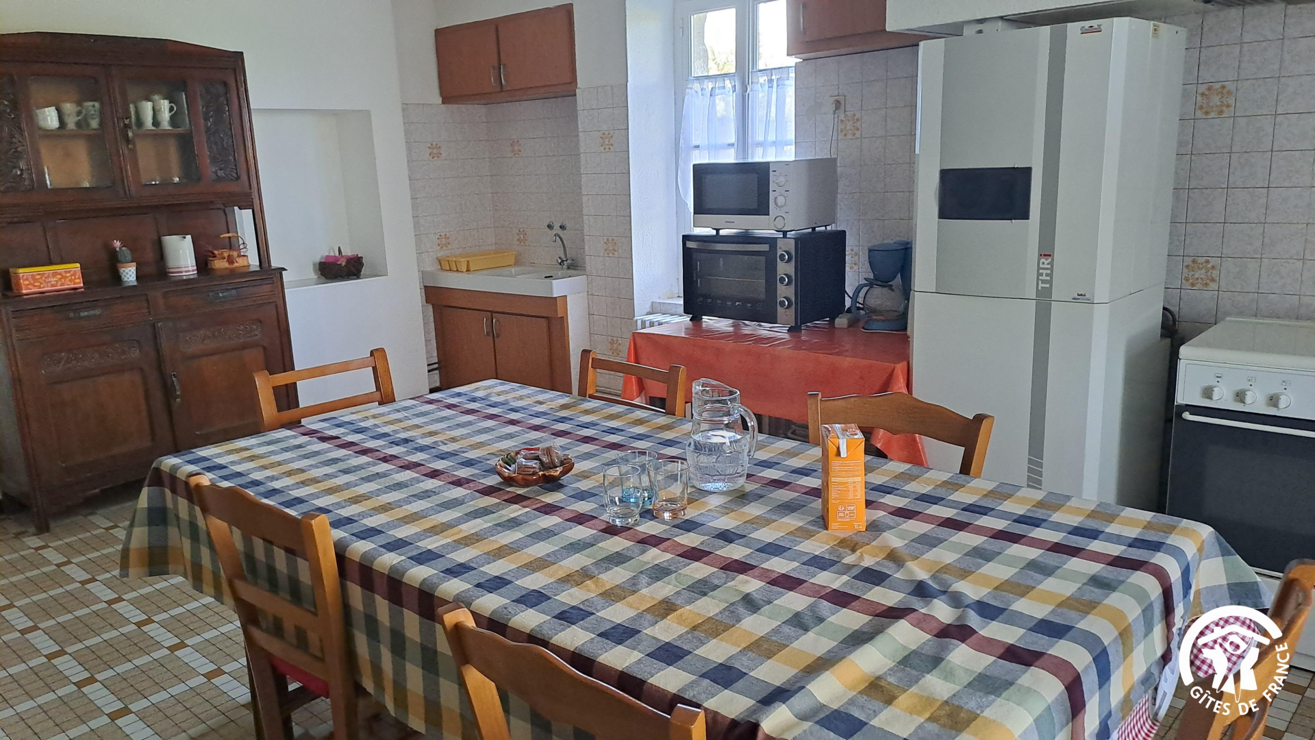 This detached house with a rustic atmosphere is perfect for a peaceful family stay. On the ground floor, you’ll find a welcoming living area with an open-plan kitchen (oven, microwave, refrigerator, gas stove, hob, blender, toaster, filter coffee maker), a dining space, and a cozy lounge for relaxing together.