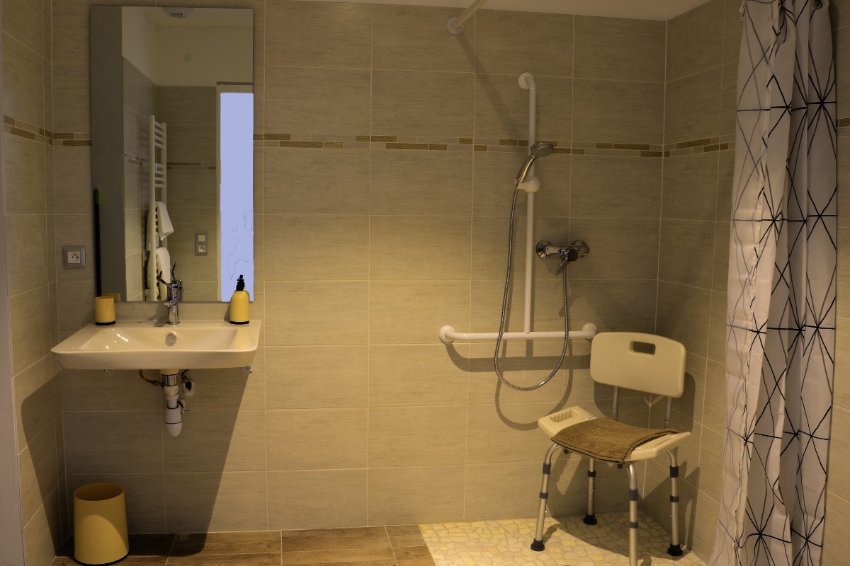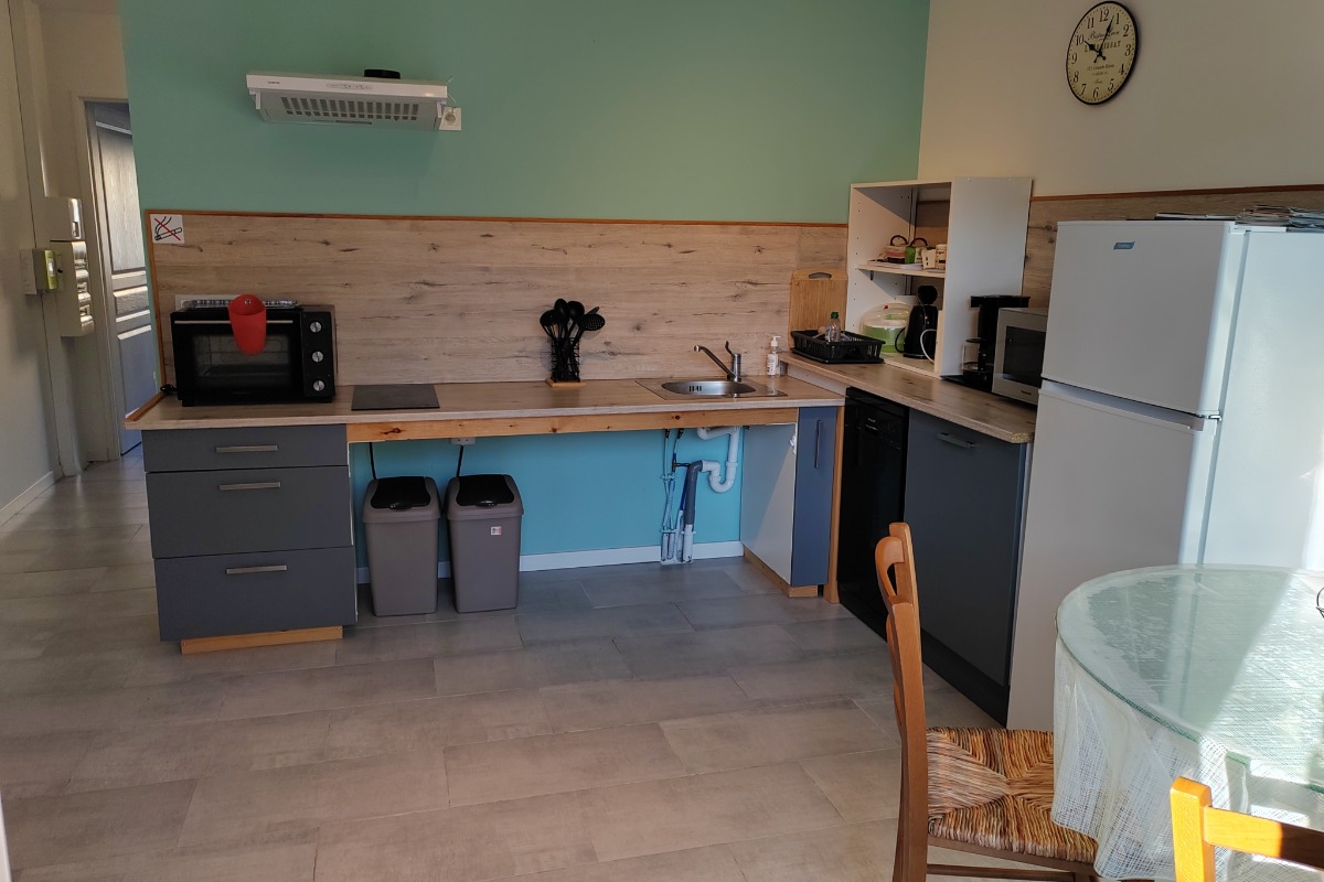 LE MANAKA is a small charming residence in Combes, labellised Tourism and Handicap, dating from 2019. It is composed of 6 modern apartments located in a green, quiet and relaxing setting. Private parking is also offered to our guests. Le Turquoise is a 29 sqm apartment for 2 people ( 6 m² for the shower room), on the ground floor. It is located 900 m from the Ster Clinic and 200 m from the Alexandre Jollien Care and Rehabilitation Centre. The apartment consists of a living room TV/TNT/ dining room, an open equipped kitchen: Senséo coffee maker, microwave, fridge, private washing machine, dishwasher, toaster. Independent Room with two beds of 90 cm. Wooden terrace on garden, Garden furniture. Partial air conditioning. Free Wifi.