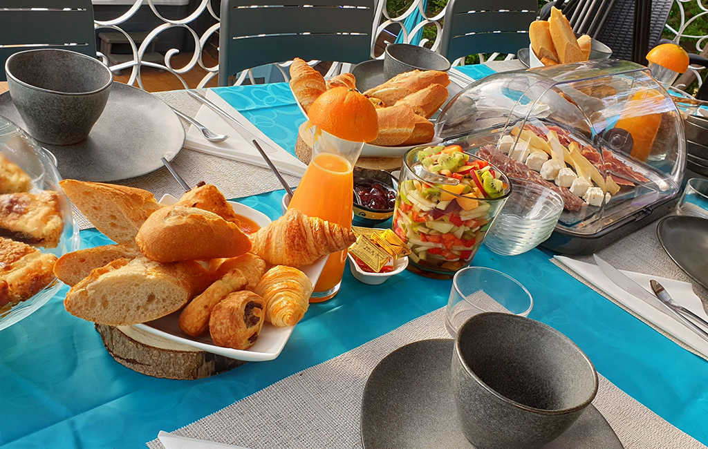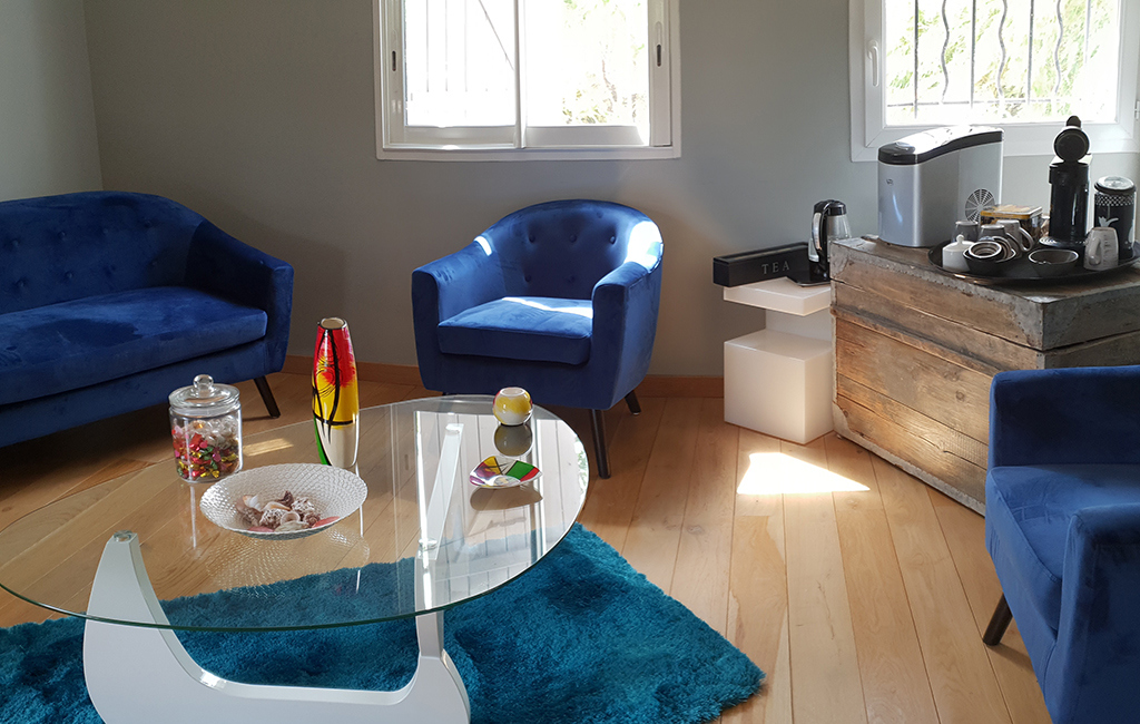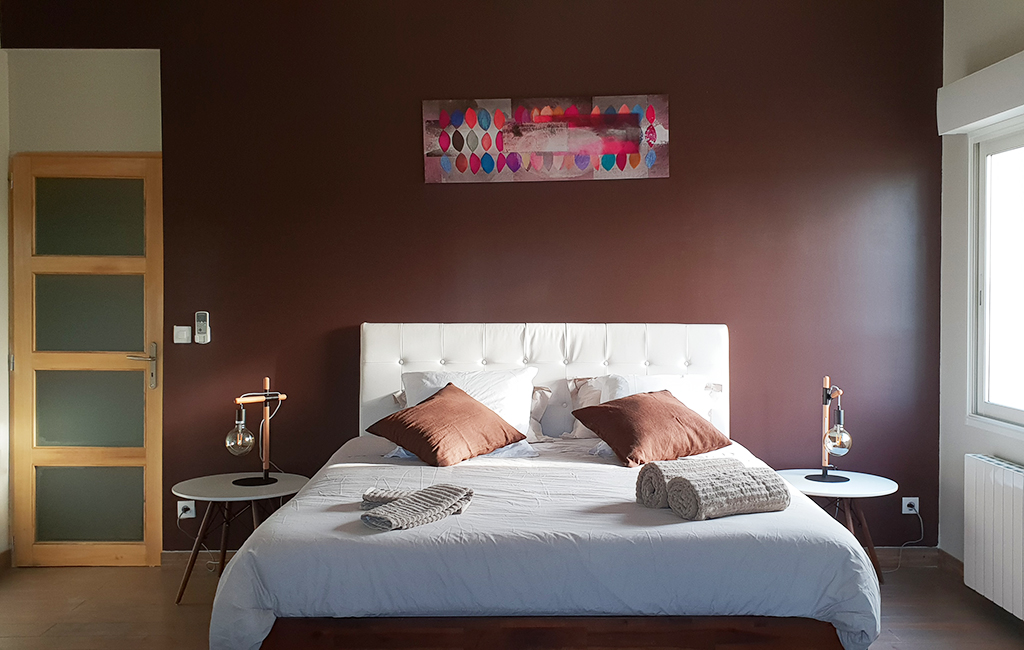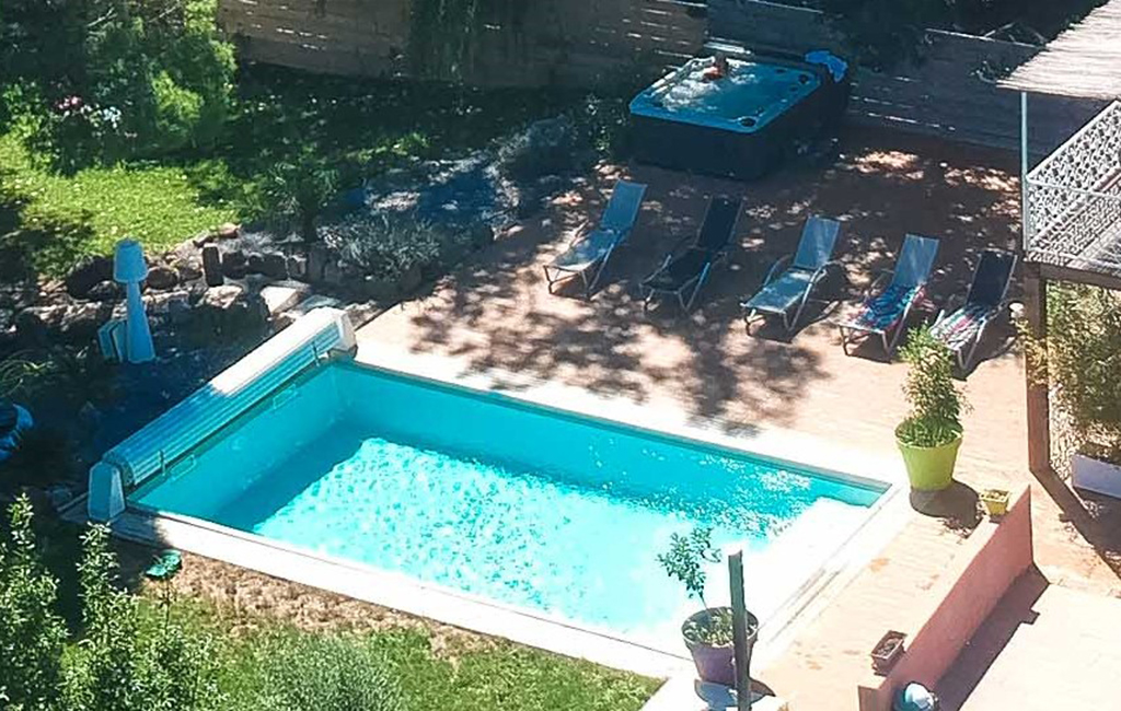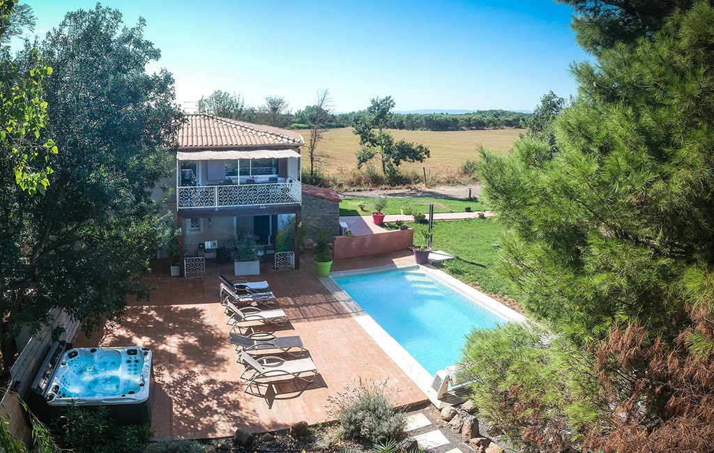 Pour votre confort, nos chambres, à la décoration moderne et soignée sont climatisées et avec salle d’eau privative. Vous bénéficiez également d’un parking privé sécurisé. Nos chambres d’hôtes sont réservées aux adultes. Pour vous détendre, une grande piscine chauffée, un jacuzzi et une terrasse de plus de 100 m2 sont en accès libre. Sur plus de 600m2 vous découvrirez notre salon d’été sous les Pins, ainsi que différents endroits pour vous relaxer. Un salon commun est également à votre disposition, toute la journée et gratuitement, vous pouvez déguster un café, thé et quelques gourmandises. Une dégustation vous est proposée durant l’été (tapas, huitres…) dans notre espace paillotte. Fabrice, cuisinier de formation, a le plaisir de vous proposer une Table d’Hôtes (sur réservation) avec des plats régionaux élaborés à base de produits frais de nos producteurs locaux. Nous sommes à moins de 5 minutes d’activités nautiques : canoë et croisière sur l’Hérault, à moins de 10 minutes du canal du midi et ses croisières. – Chambre avec lit king-size, armoire, table pour 2 personnes, climatisation, salle de bain de 5.5m²