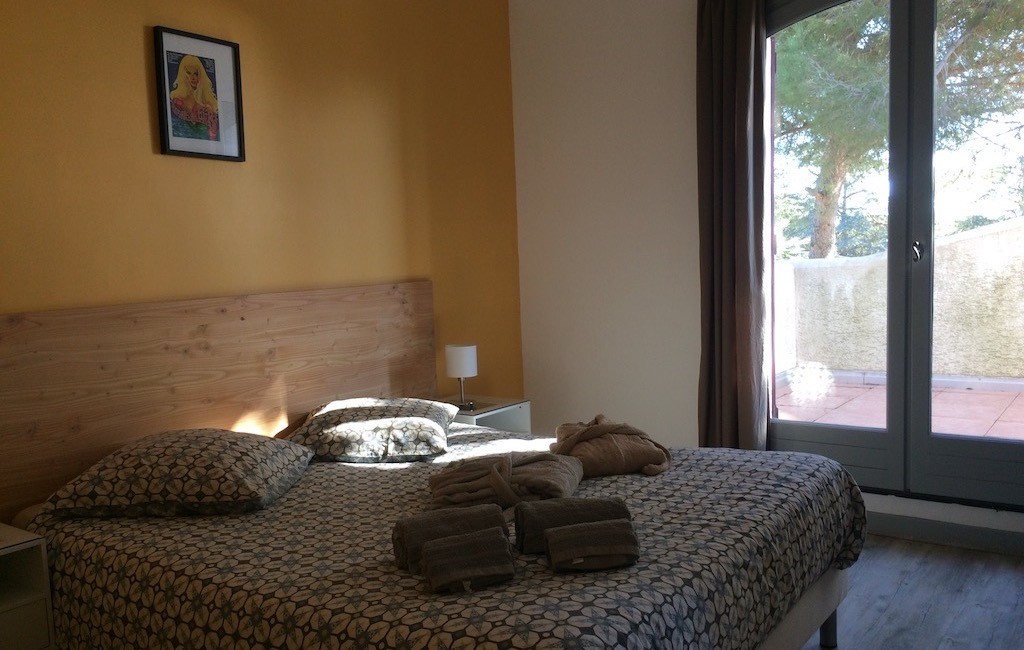 5 naturist rooms with double bed 160×200, large mirrored wardrobe, air-conditioning and WiFi. 3 rooms on pool level and 2 upstairs with solarium balcony.