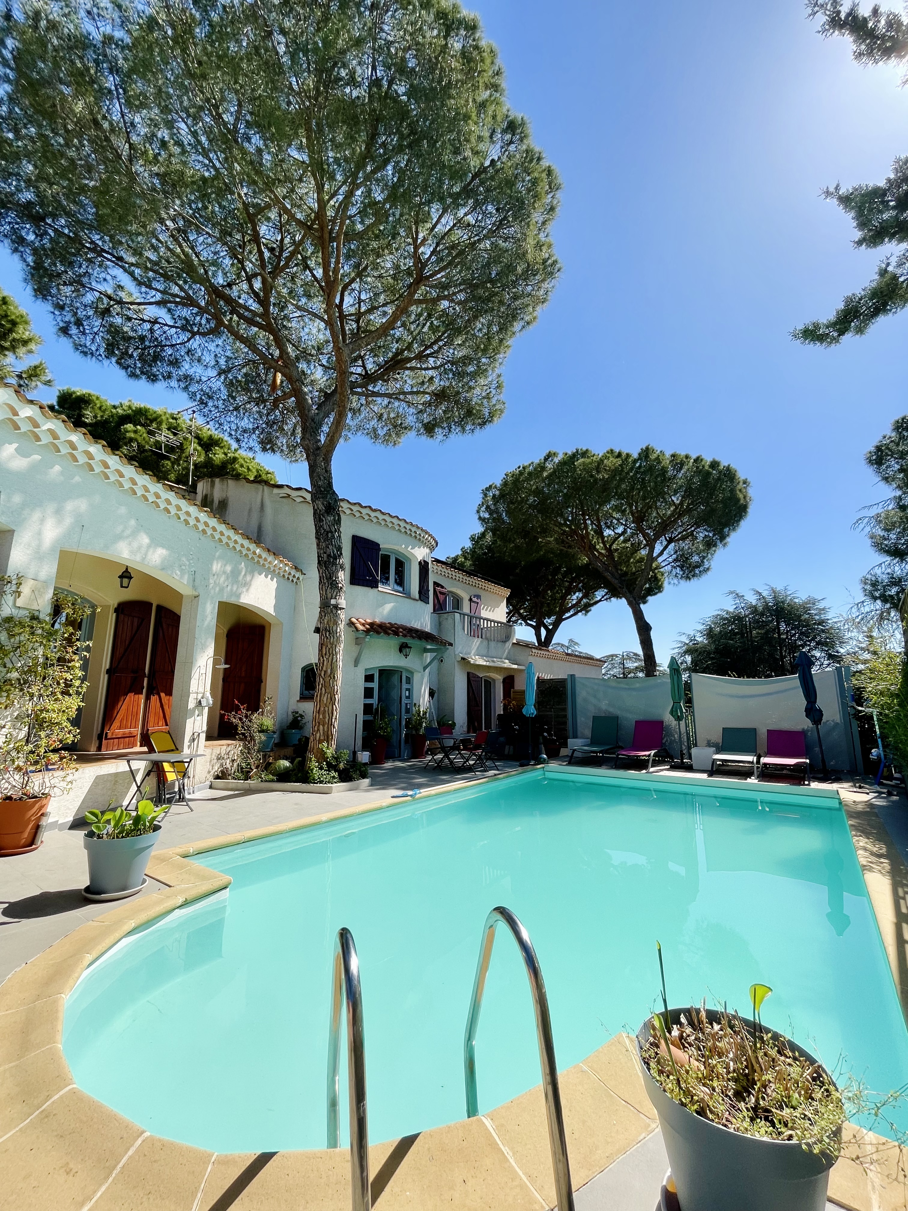 Villa dans un espace arboré avec 5 chambres naturistes avec piscine, sauna, jacuzzi et espace de vie partagée à 5 min en voiture du village naturiste.